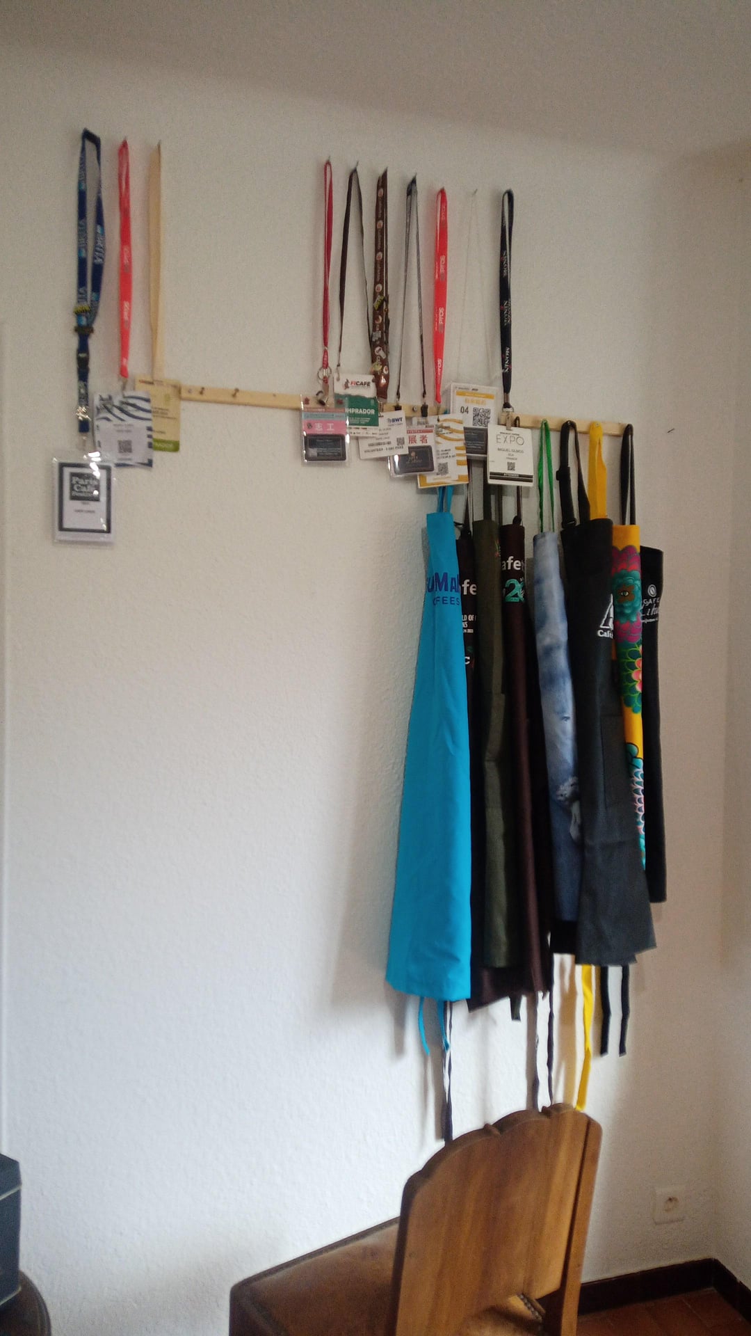 So at home, I just keep it simple, a nice selection of coffees that I bring from my trips, aprons, just slow methods.