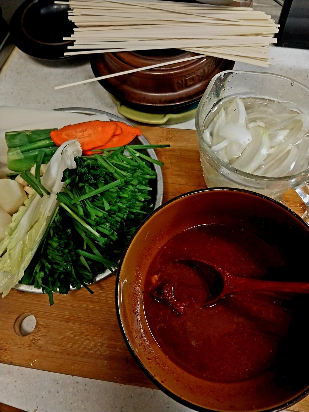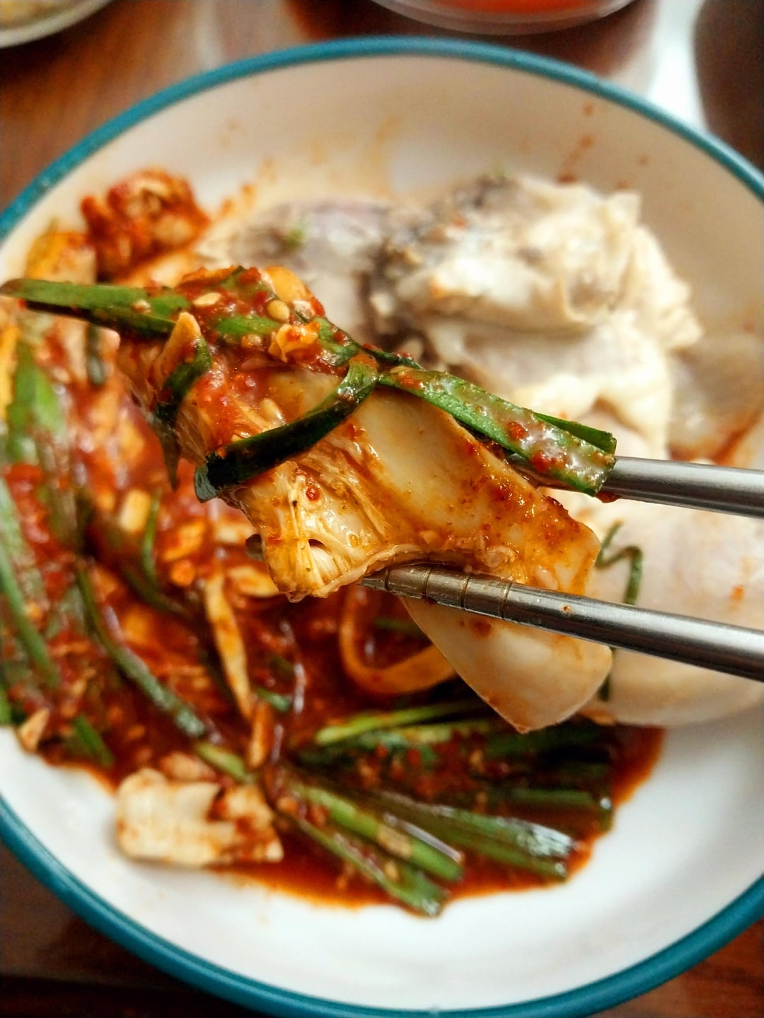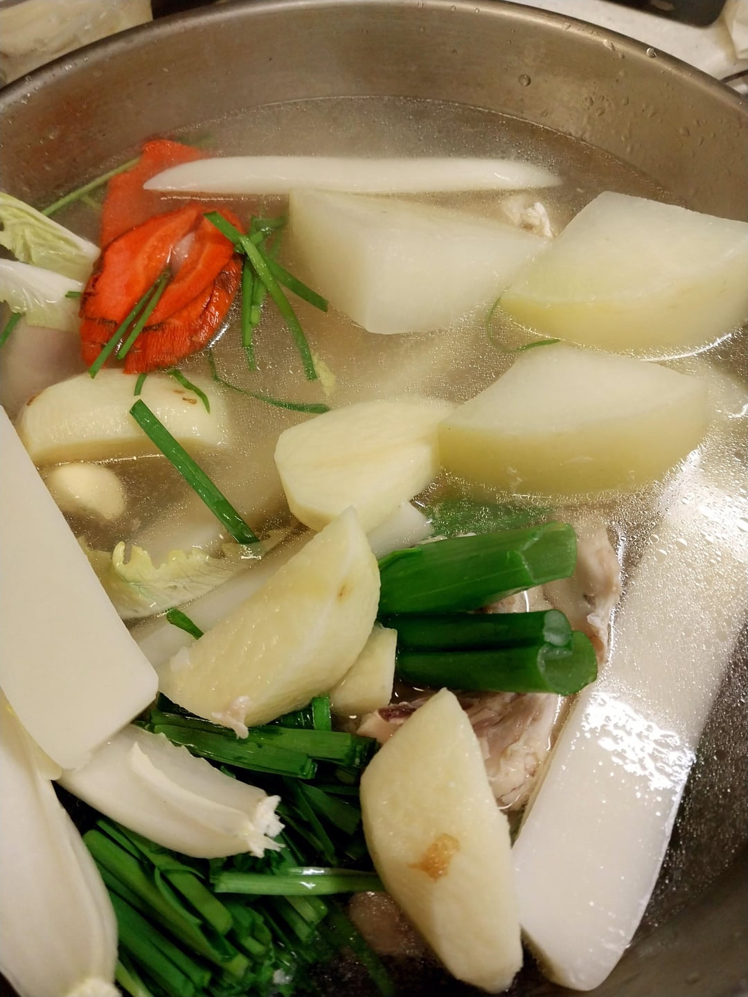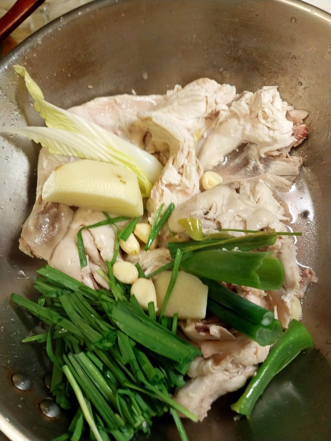Dakhanmari is a new chicken dish that originated at Dongdaemun Market in Seoul. It is a dish where boiled chicken is boiled with potatoes and rice cakes and dipped in a unique seasoning sauce. After eating it dipped in sauce with cabbage, green onion, and chives, finish it off by boiling kalguksu or making fried rice.