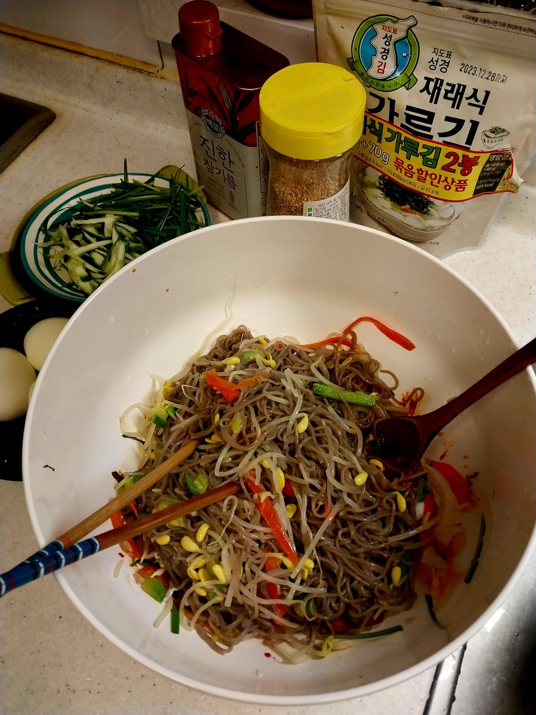 Makguksu is buckwheat noodles