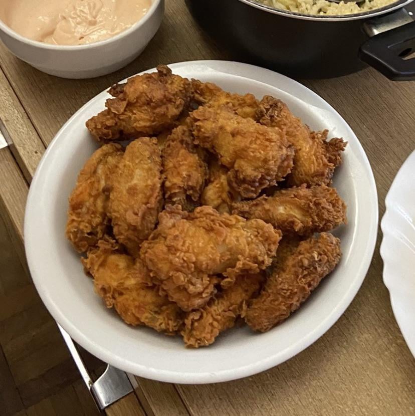 *METHOD:* – cut and clean the chicken wings – season it – pass the chicken in the mixed egg and then in the flour – deep fry it