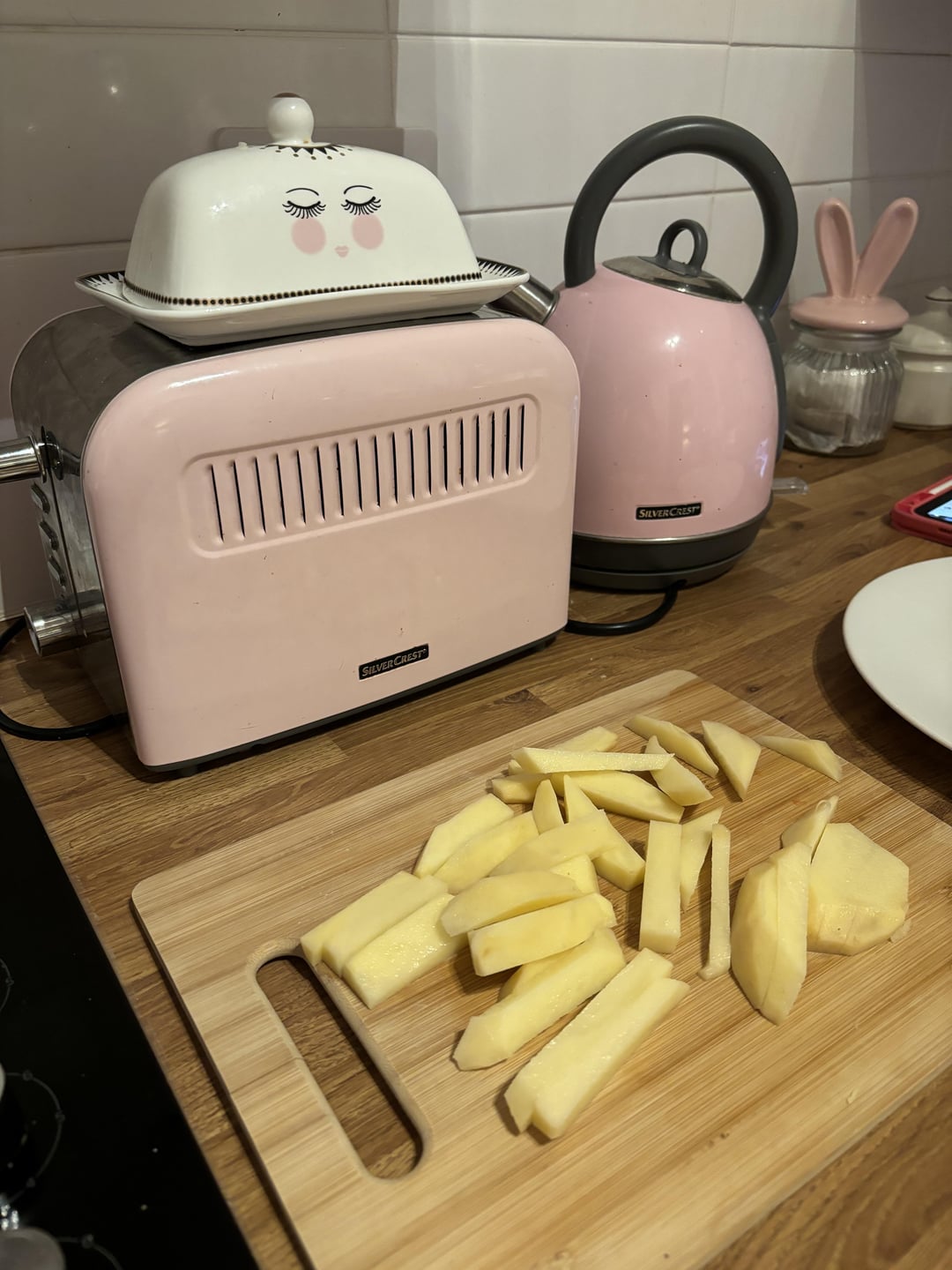 I peeled and cut up two small/medium potatoes and parboiled them for 5-10 mins.