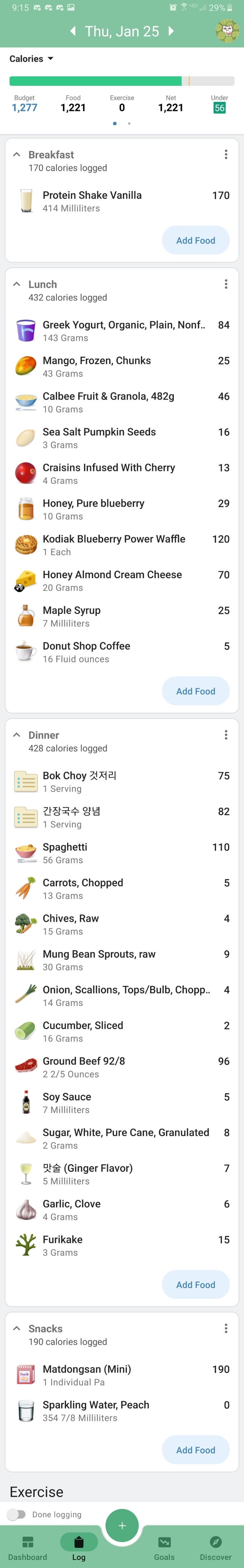Fairlife vanilla protein shake, Greek yogurt bowl w/ the works + Kodiak protein waffle w/ honey almond cream cheese and maple syrup + coffee, Matdongsan (mini bag) w/ Waterloo peach, and soy sesame spaghetti w/ bok choy geotjeoriby IWumboYou Write A CommentYou must be logged in to post a comment.