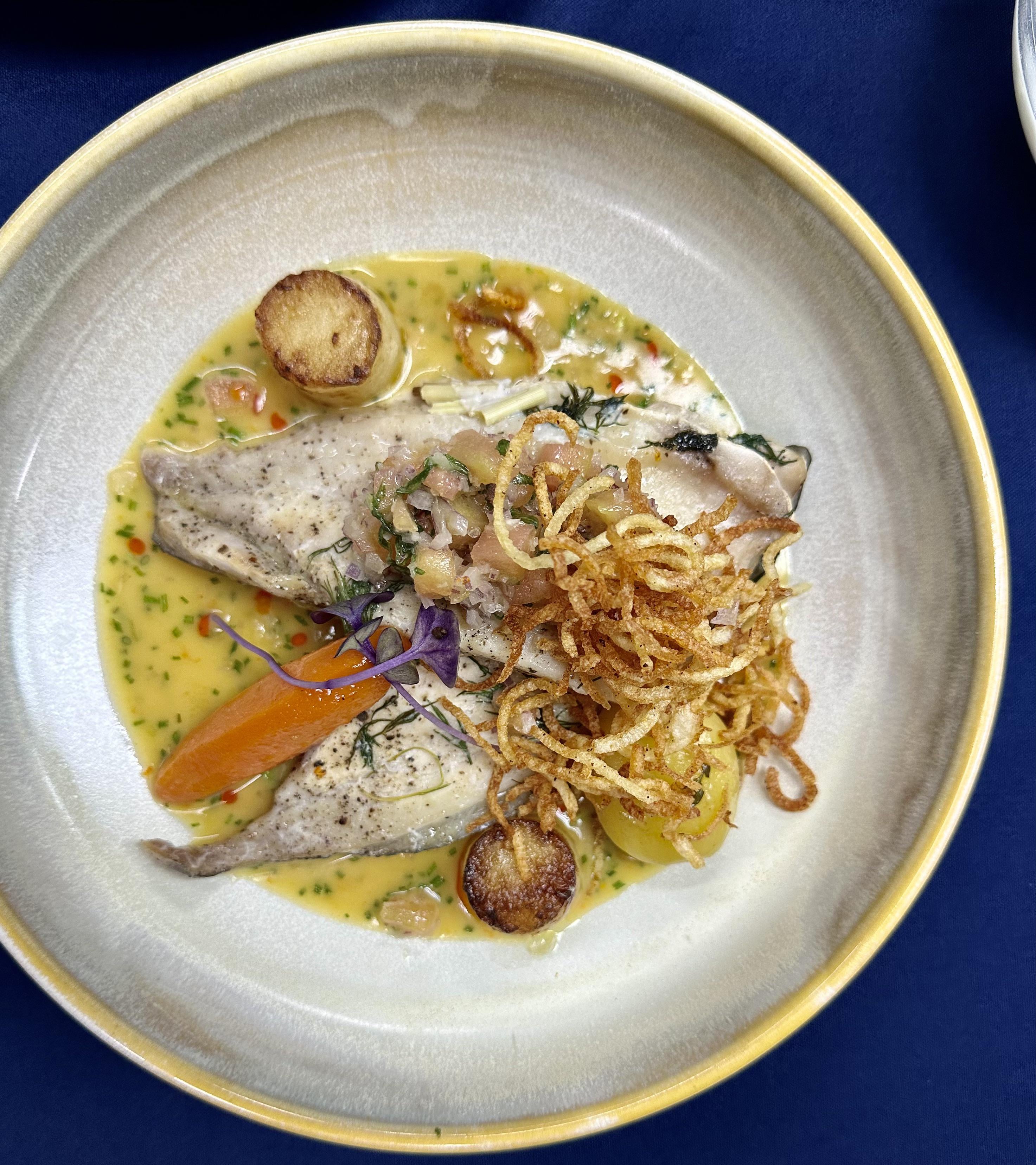 Edit: can’t see the salsa, put the beurre blanc on one side and the salsa on the other, let people choose which they want on any given mouthful.