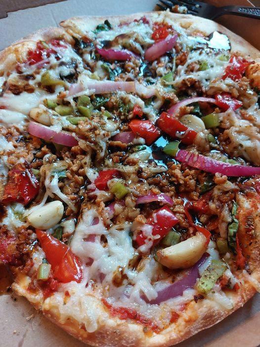 * 1 prepared pizza crust (either homemade or store-bought) * 1/2 cup tomato sauce * 1 cup vegan cheese (shredded) * 1/4 cup sliced black olives * 1/4 cup sliced red onion * 1/4 cup sliced mushrooms * 1/4 cup chopped bell pepper * 1/4 cup chopped artichoke hearts * 1/4 teaspoon garlic powder * 1/4 teaspoon dried oregano * Salt and pepper to taste * Fresh basil for garnish