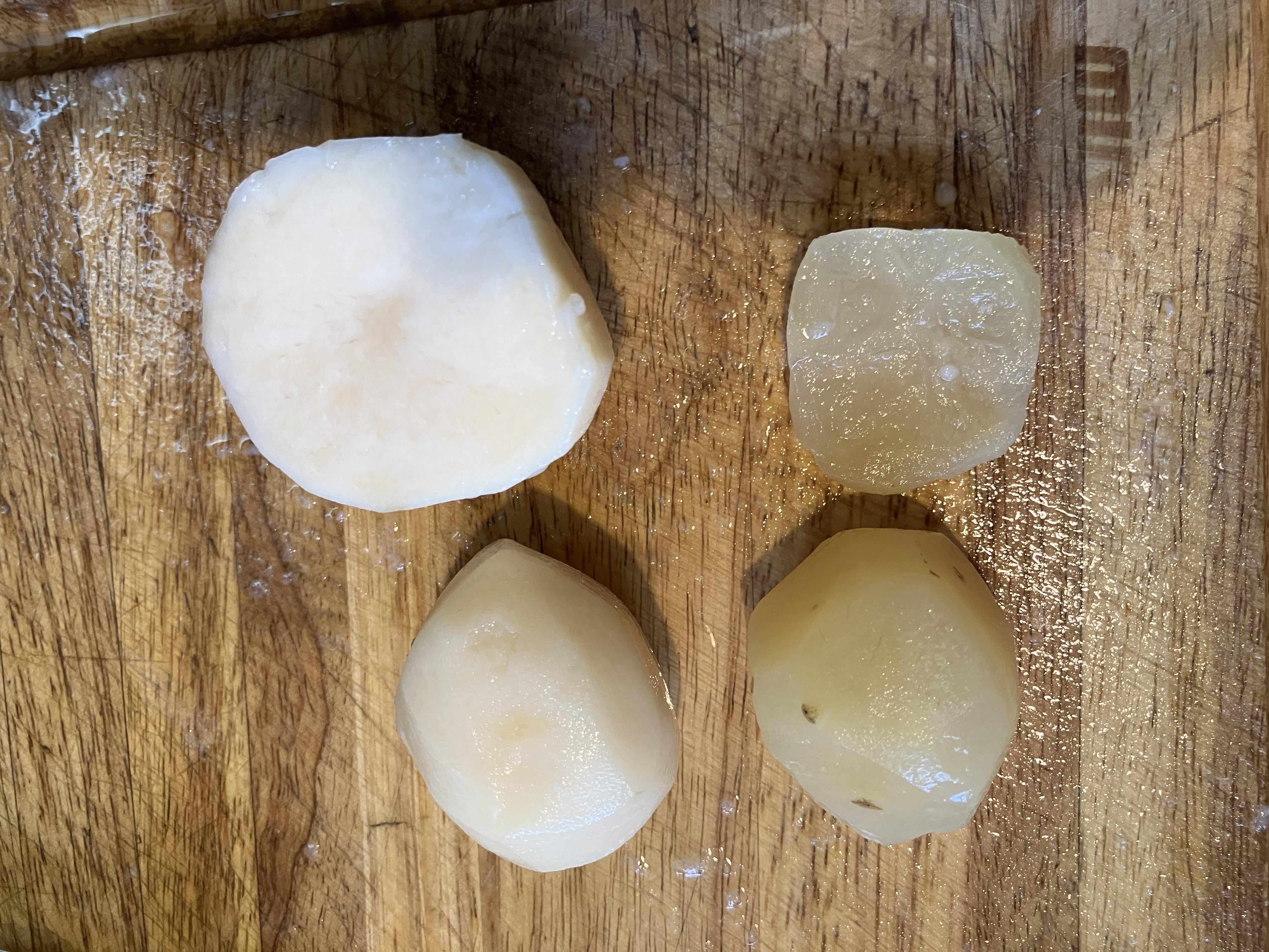 In the picture these potatoes were canned in the same jar. The one on the left is fine. The one on the right is the problem. What am I doing wrong? Thanks in advance.