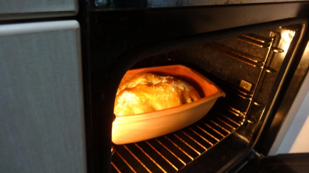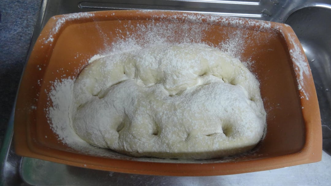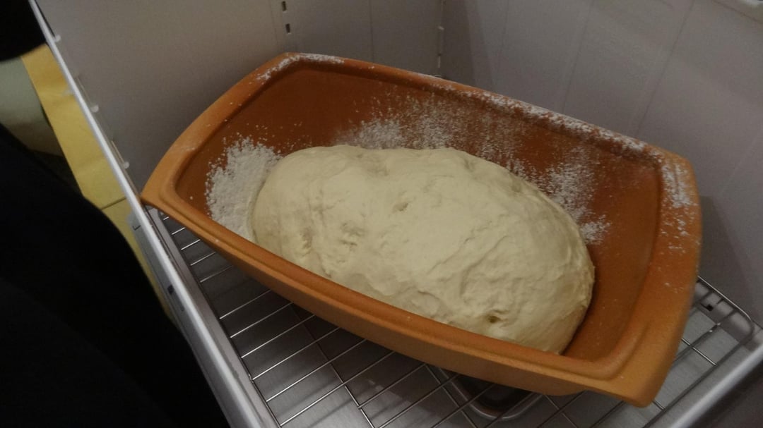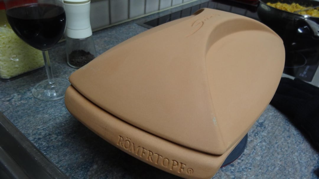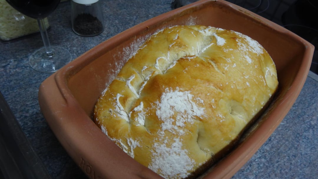 Fresh bread from the clay baking brick (what Germans call römertopf = Roman pot)