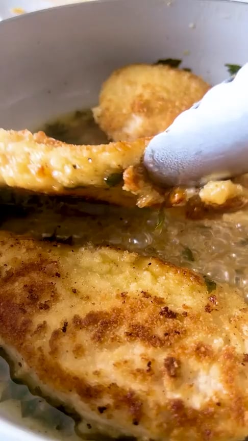 • 2 chicken breasts • 8 grams of flat parsley leaves • 2 garlic cloves • 1 juice of 1 lemon • 1 egg • 3 tablespoons honey Bread and spices • 1/2 tablespoon black pepper • 60 grams of plain flour • 1/2 teaspoon salt • 1 tablespoon oil Bread and baked goods • 60 grams of rusk • 40 grams of butter