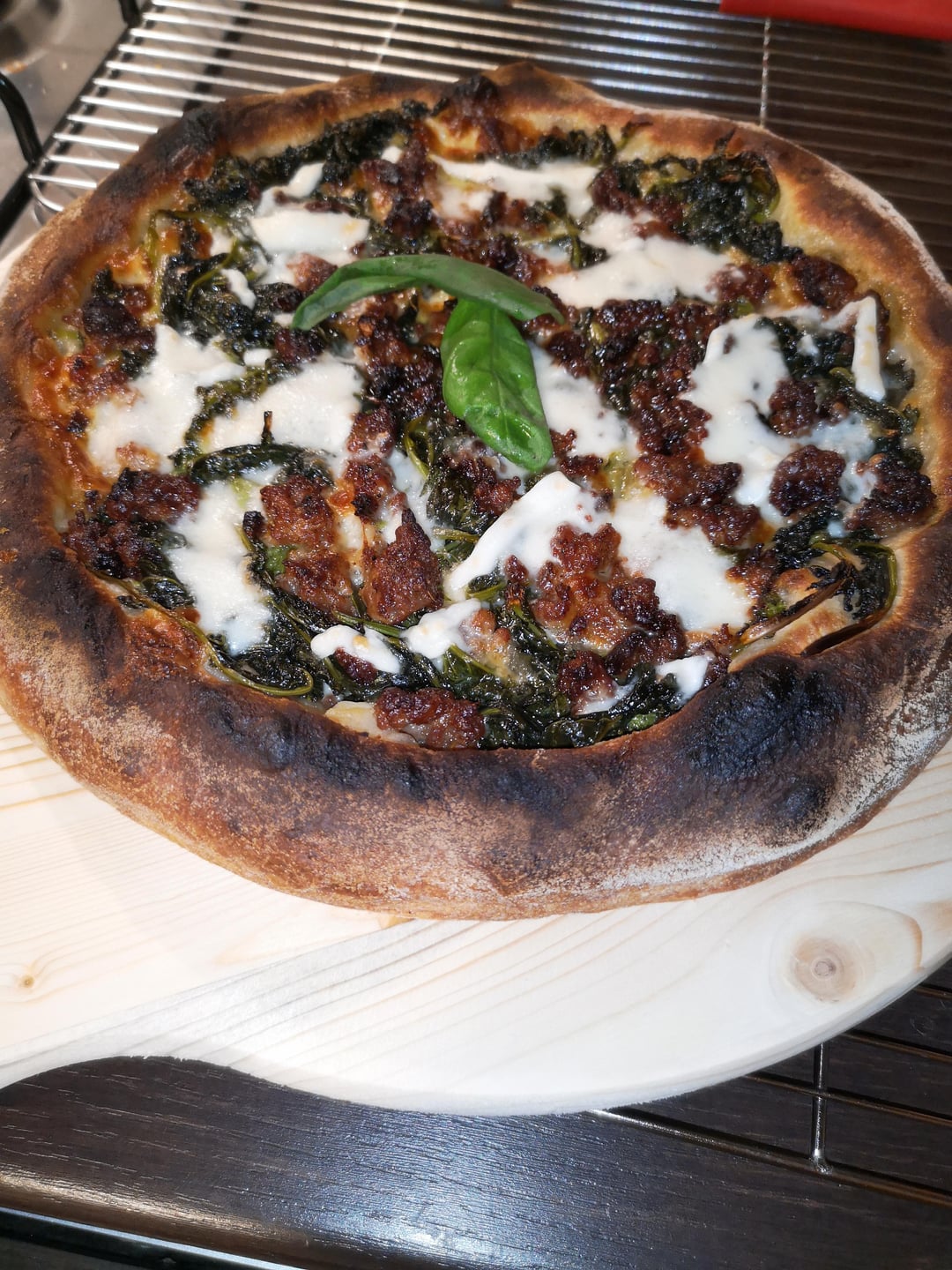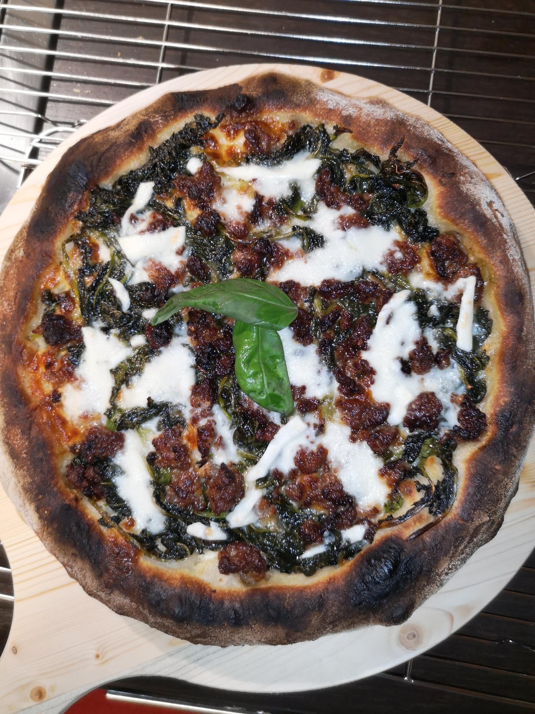Toppings: fiordilatte, scamorza cheese, fresh sausage and green turnips.