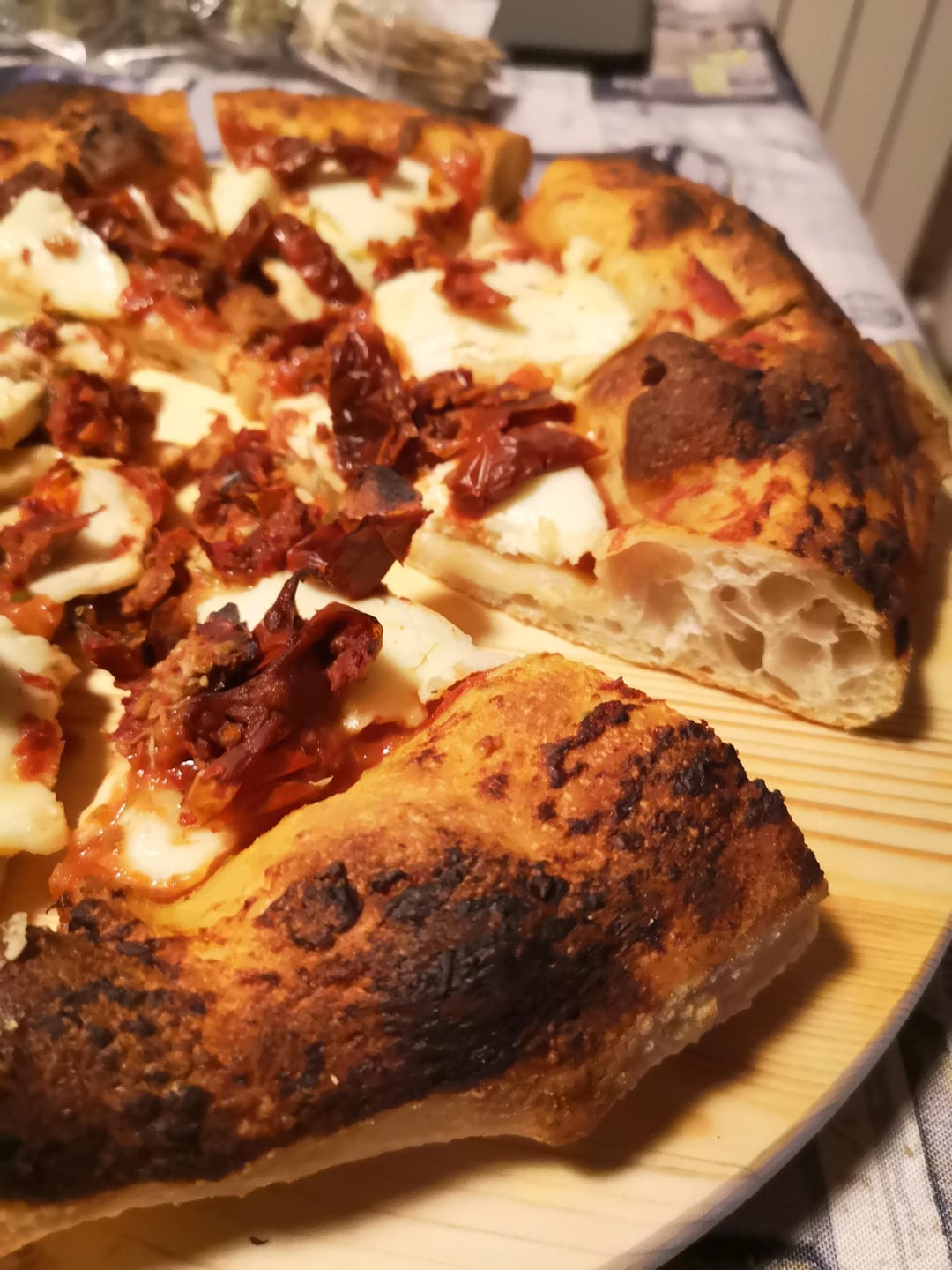 Anyway, I used the same recipe for all the pizzas shown. The only differences are that for the pizzas in the last pictures I added the diastasic malt and I made an even better dough, referring for example to the fermentation, the smoothness and firmness.