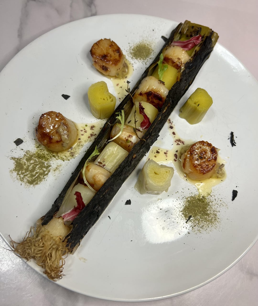Needs a different plate. Long rectangle. That or cut the leek diagonally in half and lay it side by side. As is, it’s way too messy.