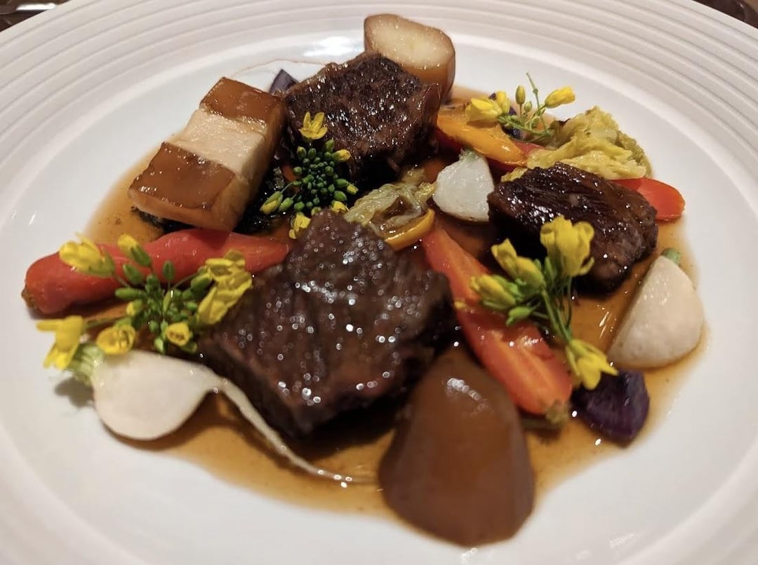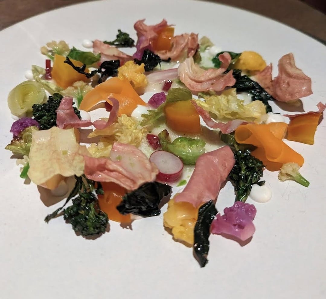 It’s my wife’s birthday, so I made dinner for once! (1) Michel Bras’ Gargouillou Salad (2) Vegetable Pot-au-Feu with Beef (3) Panettone with Gelato and Hazelnut Zabaione