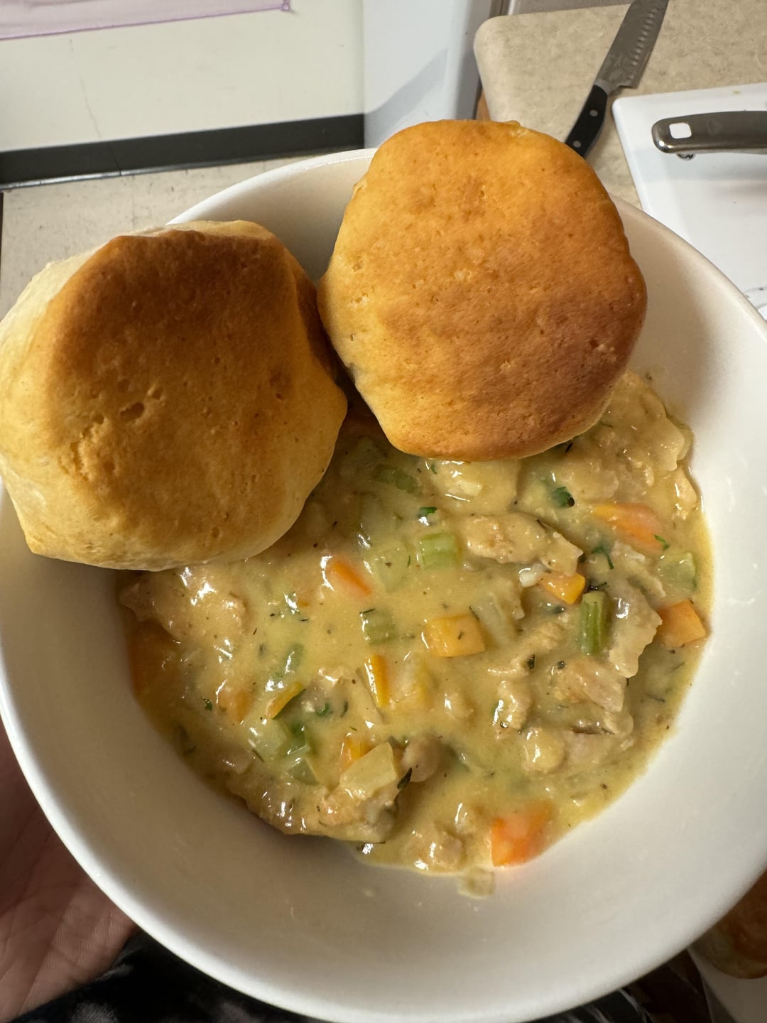 that biscuit pot pie is in the oven right now