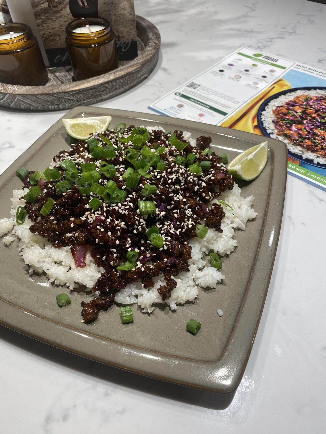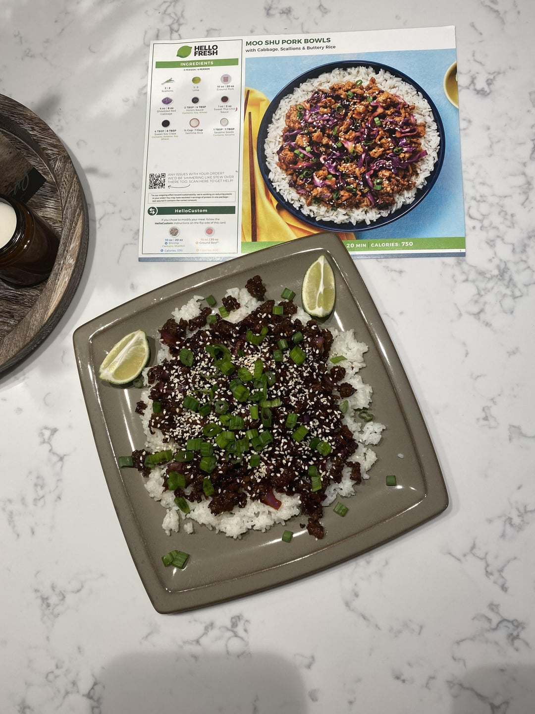As far as portion goes. When I see the recipe calls for 3/4 cup of water, I know the rice will be small. For this meal, if I’m STARVING I will add a bell pepper and split an avocado with my wife. If we don’t have those, like 99% of the time we do, then add another rice. If the give a lemon or lime, I always zest it and find a way to use it. Never have lime wedges left over either. Squeeze them in the meat, right at the end. Scallion greens, usually add those into the rice when I fluff it. I add a little different seasoning too. If they send more sauce but tell us not to use it all, but add sugar, we usually use more sauce and don’t add the sugar. HF is just the starting point for us. I don’t think there’s any meals that we don’t mess with. Might have overcooked the cabbage on your dish.