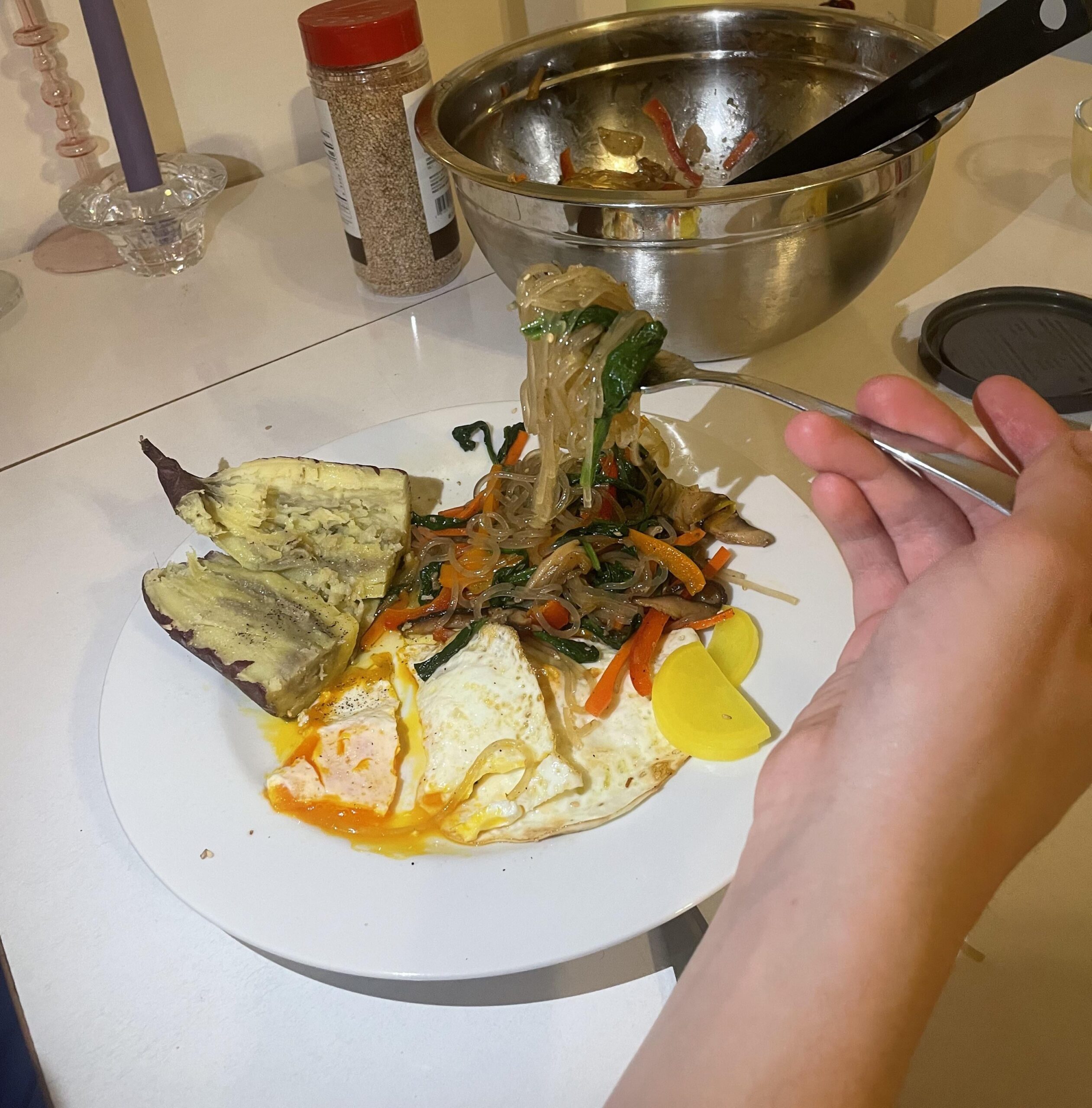 plus some fried eggs, pickled radish, roast sweet potato.by OkVermicelli182 Write A CommentYou must be logged in to post a comment.