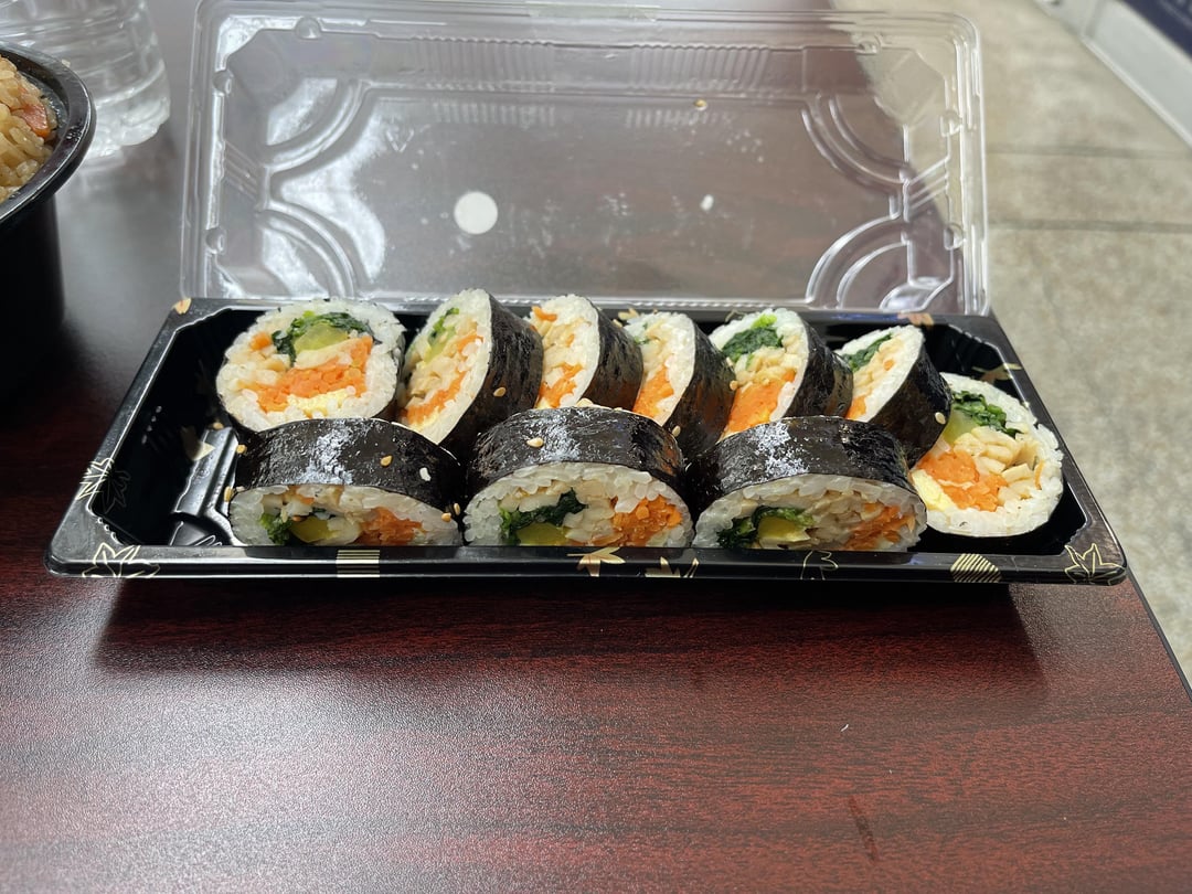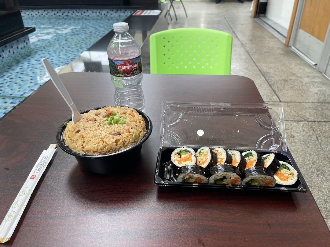 Korean Brunch; Chicken Bokeum Bap(fried chicken rice) Kimbap(bean curd) from WOORI Family Mart