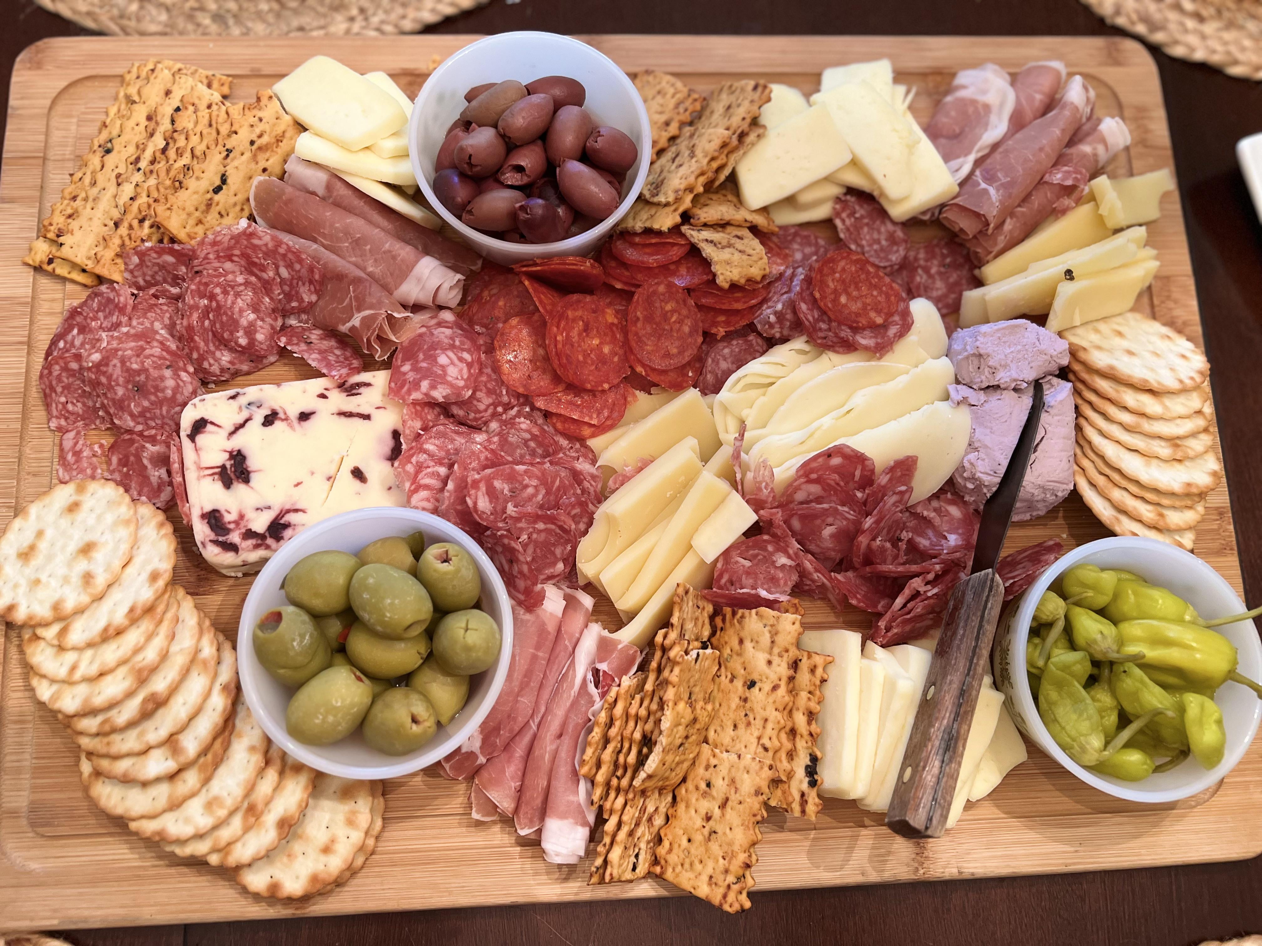 It’s a little messy but this was just for a random family dinner. Lol also we don’t go all out with fruit lol we’re in from this is just called antipasto. 😂 my sister uses truffle honey in beautiful jars on her board. All of this meat is from LIDL. My absolute favorite combination is blueberry goat cheese, prosciutto, truffle honey. That combo SLAPS. The fruit with the sharp cheese and the salty. UGHHHH