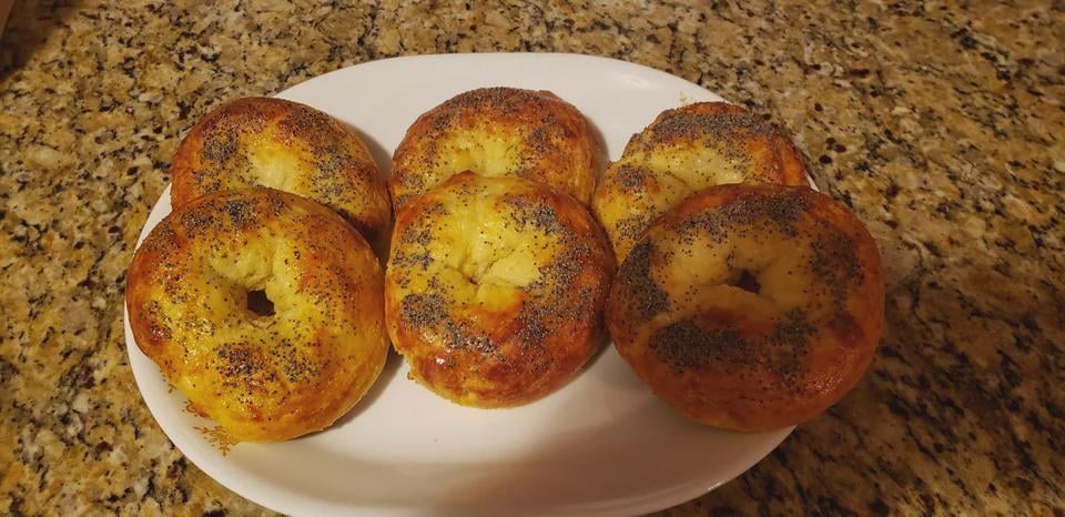 If you want to add a seasoning on top, whisk the 3rd egg in a separate bowl and brush each of the bagels with egg. sprinkle the seasoning on the top.