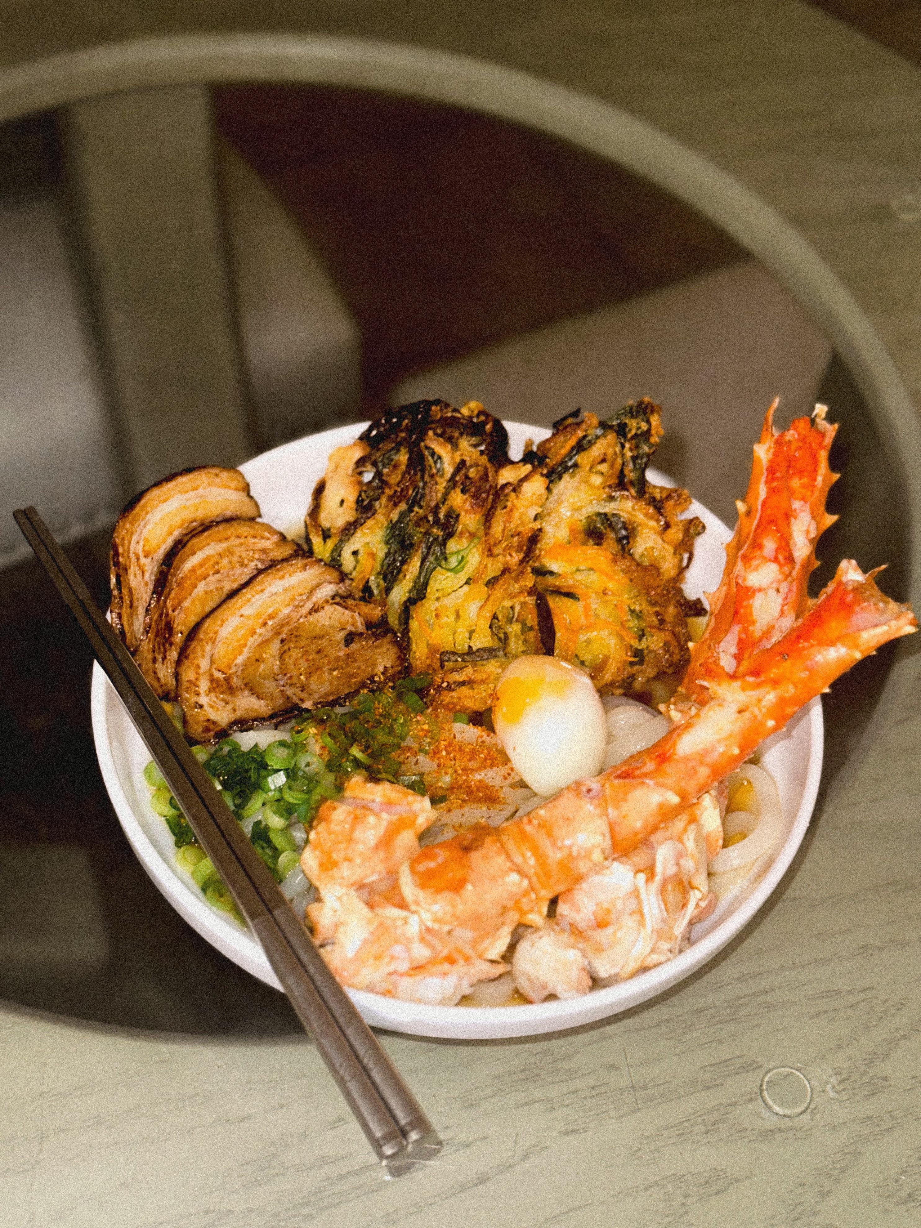Udon noodles w/ chashu, kakiage, and king crab legs. by slutforgrilledcheese Write A CommentYou must be logged in to post a comment.