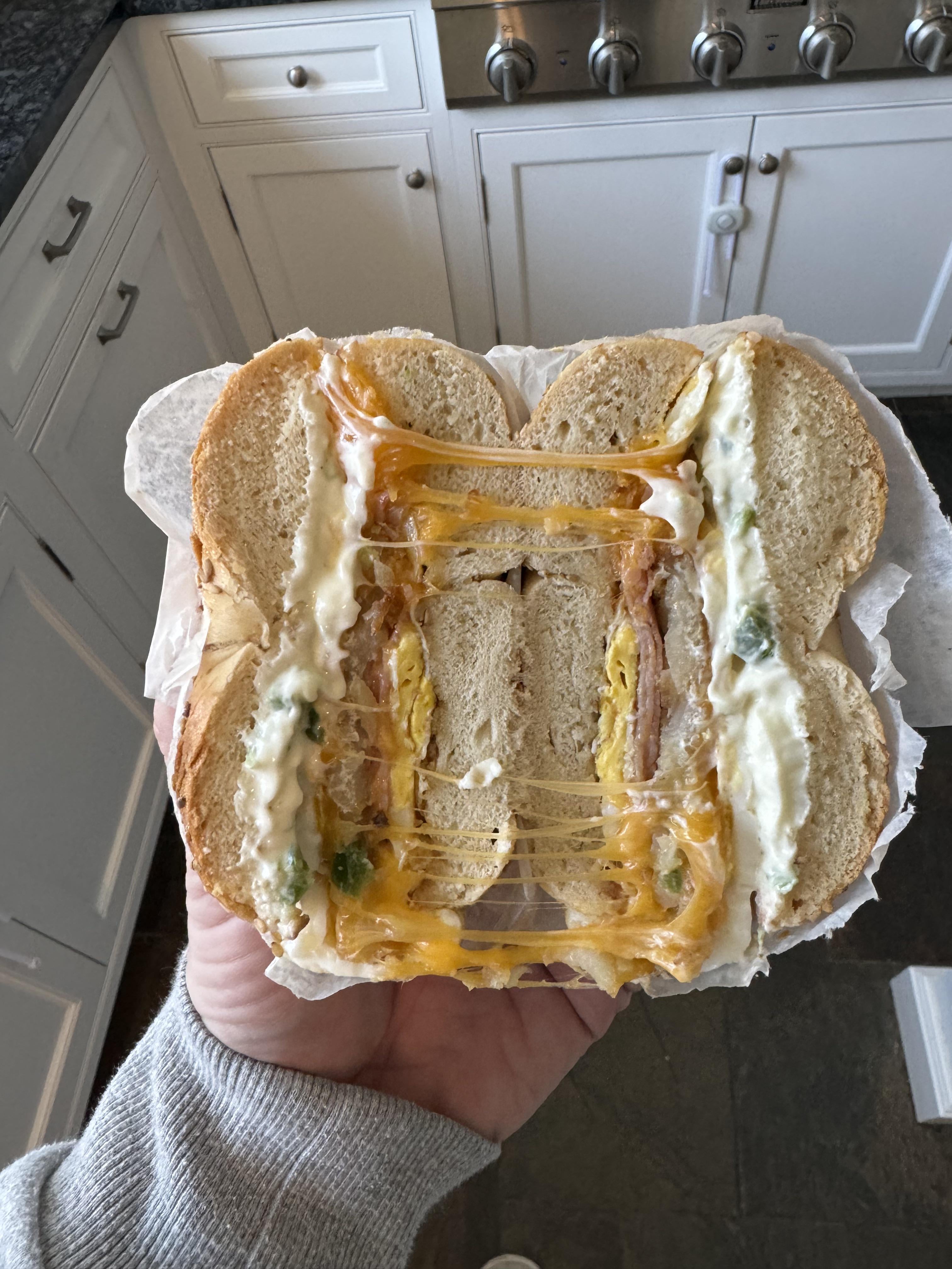 You’re looking at jalapeño cream cheese, eggs, hashbrown, cheddar cheese on a sesame bagel by pixmod 4 Comments pixmod 2 years ago Ooops also some ham squeezed in there somewhere. nattellinya 2 years ago I disagree, this is just the right amount of board for a breakfast sandwich ArmadilloOtherwise77 2 years ago Mmmmmmmmm timothycl13 2 years ago I wouldn’t make it to the toiletWrite A CommentYou must be logged in to post a comment.