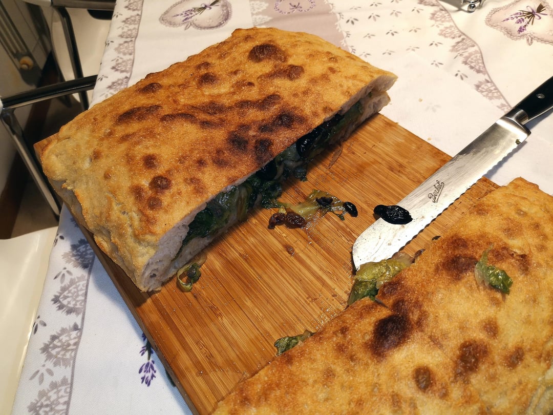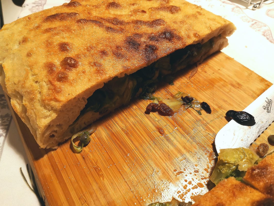 As a matter of fact, it’s a pizza typically served in Neapolitan houses on the 24th of december at dinner. Coming from a frugal lunch, or no lunch at all, as the tradition would require, on the Christmas evening you are welcomed with this stuffed pizza and other appetizers.