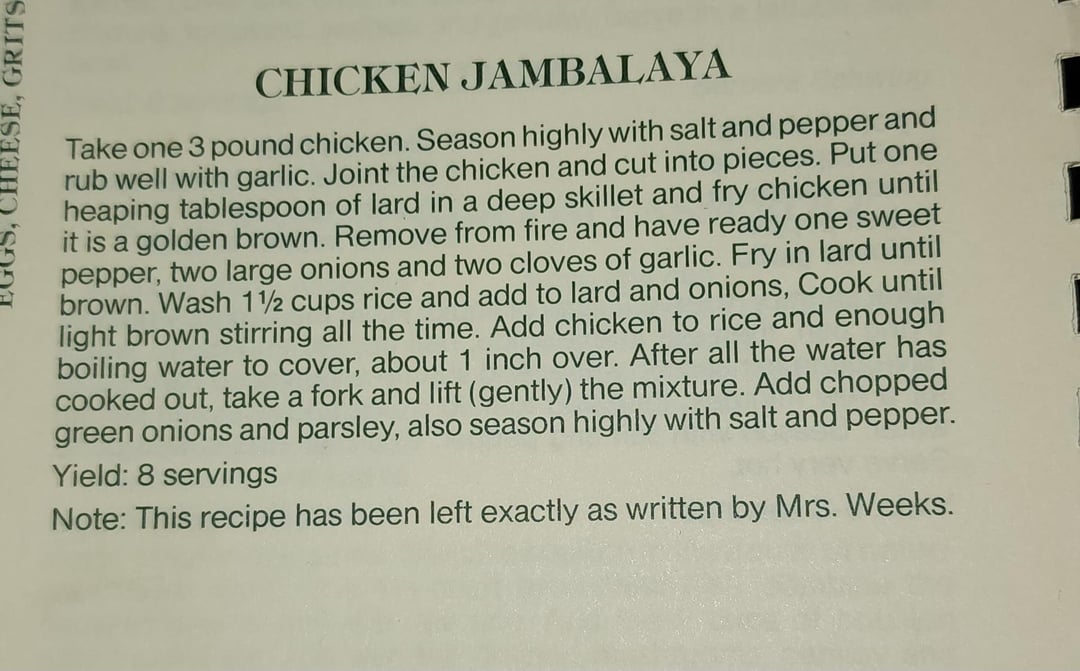 Tested this Chicken Jambalaya recipe from the The Shadows-on-the-Teche cookbook. It’s from a historic home in New Iberia, LA. The cookbook is from 1984, but this recipe dates back to the 1830s.