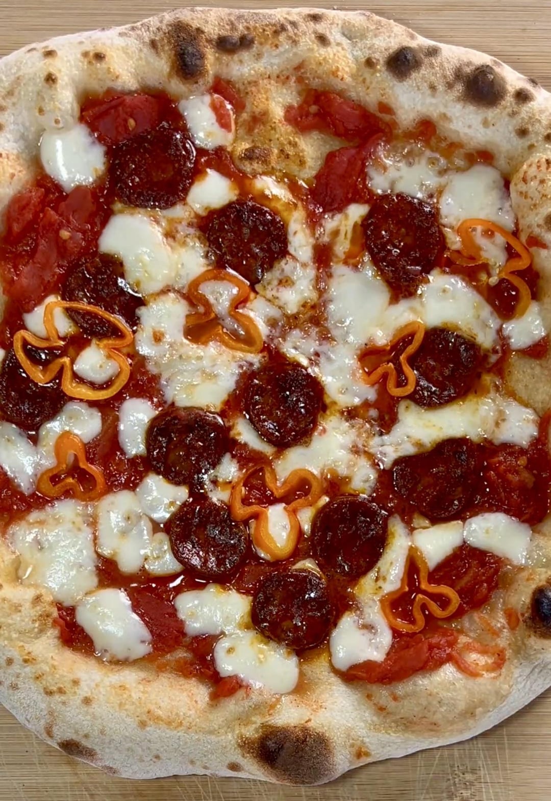 I had an idea to make a spicier diavola than the usual ones I had in the past. I used some scotch bonnets along with carolina reaper marinated chorizo. I can’t find very spicy chorizo where I live so I tried marinating it in some really spicy hot sauce. It did a really good job bringing some heat.