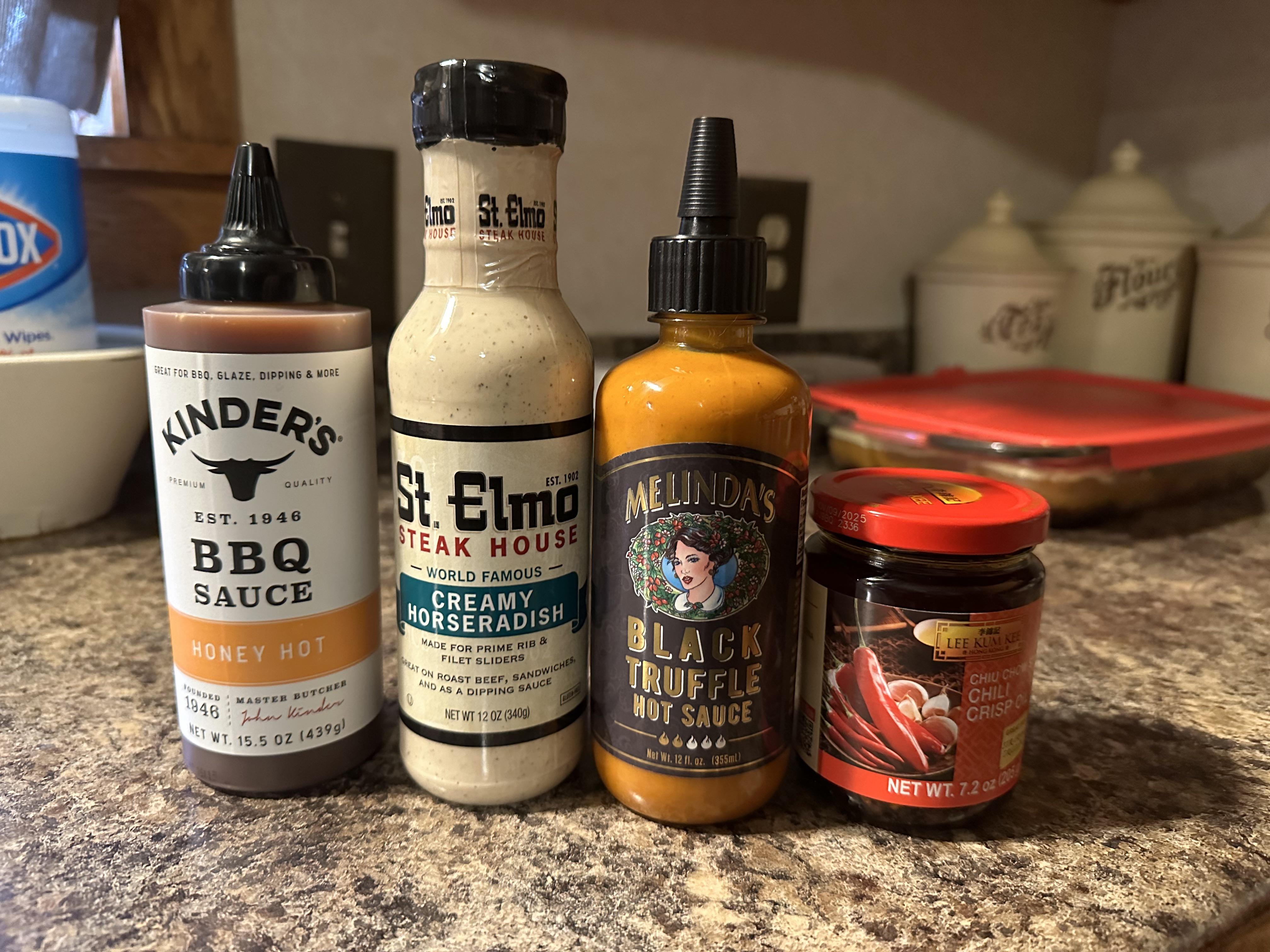 It was time to replenish the horsey sauce, and I was able to find 3 sauces I’ve been anxiously awaiting! by MajesticCat83 10 Comments Boswellia-33 2 years ago So which one did you like the most so far? TheMightyShoe 2 years ago A butcher shop near me just picked up the whole St. Elmo line. Wonder what I’ll try first?? 😁 OkApex0 2 years ago What else do you put the truffle on? I tried that once and couldn’t figure out how to use it. YoualreadyKnoooo 2 years ago How’s that horse radish? Bada__Ping 2 years ago Kinder’s makes the absolute BEST Jalapeno wing sauce I have ever had. It is absolutely delicious crizzzz 2 years ago Bro that st Elmo is solid on a ribeye DankyTheChristmasPoo 2 years ago St Elmo cocktail sauce oooooey is that stuff good. FulghamTheGoat 2 years ago The hot honey isn’t really hot at all, but tastes great. Especially on wings. I’m not a fan of that black truffle sauce though WhenDuvzCry 2 years ago Kinders has an Xxxtra hot BBQ that is tasty but not spicy in the least bit YouWereBrained 2 years ago Feel like this sub is an advertisement for Melinda’s Black Truffle sauce.Write A CommentYou must be logged in to post a comment.