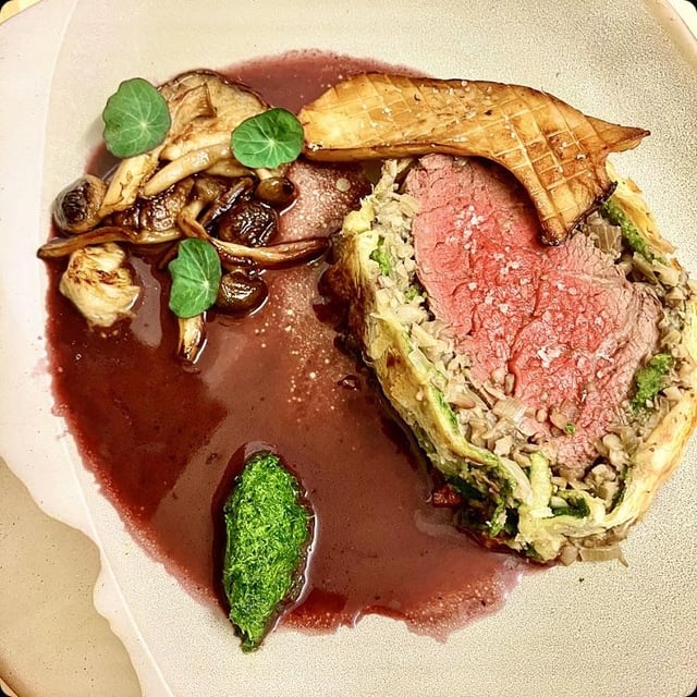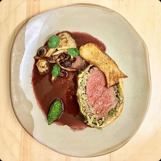 Wellington is poorly executed. Sauce looks a bit too loose in my opinion. Hardly any color on your veg. I’d give it a 4/10
