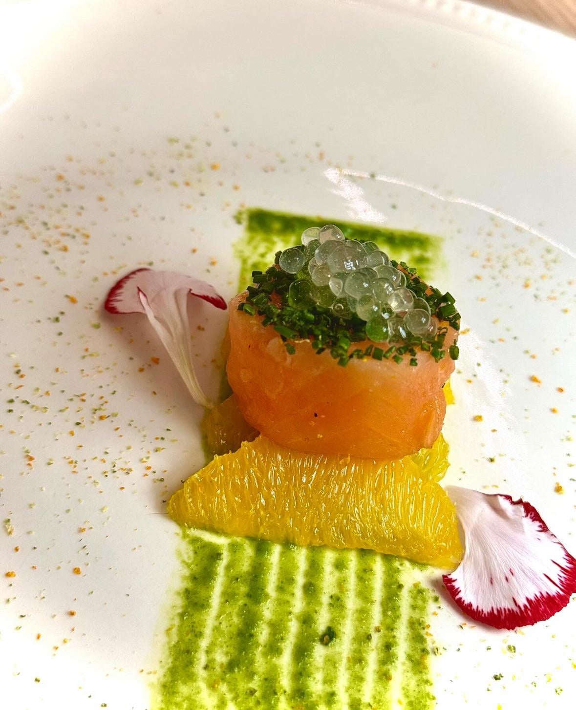 My first attempt at a Michelin level dish, I decided to try to emulate the French Laundry’s poached salmon. I couldn’t afford the beluga caviar that was originally used as a garnish, so I tried my hand at spherification using ginger beer. I’m super happy with how it turned out! I am in college and unfortunately don’t have a chinois at my apartment so the pea shoot coulis is not as finely puréed as I was hoping for but I am overall very satisfied with the turnout.