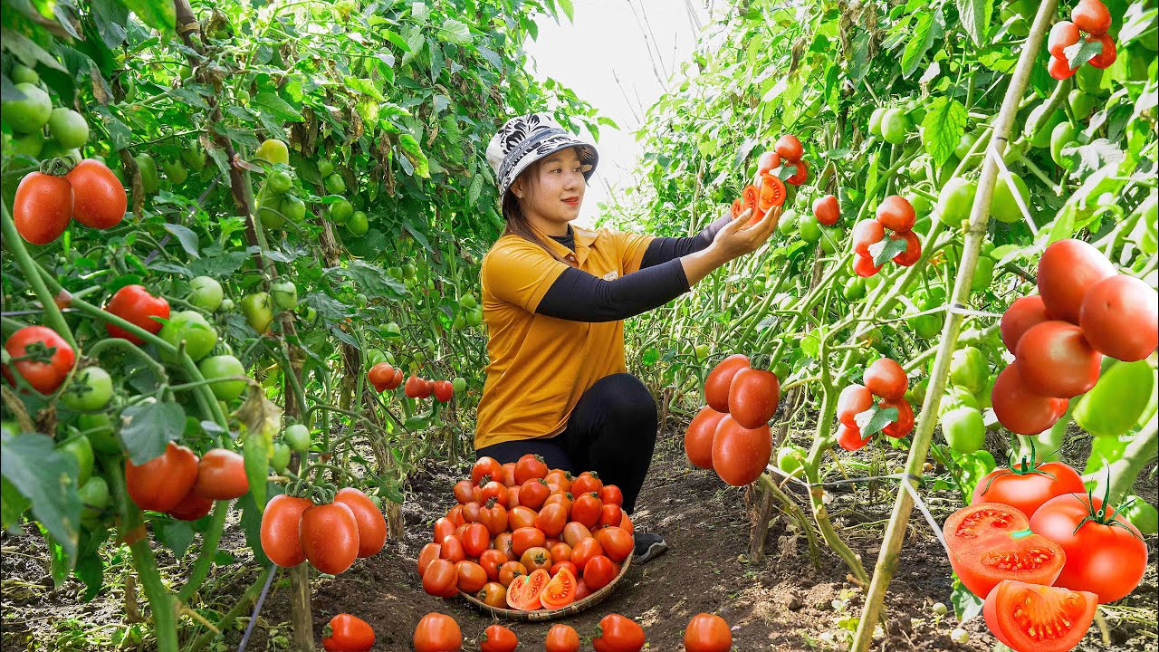 Harvesting Red tomato to the Market to Sell Vegetable garden care! Lucia’s daily life