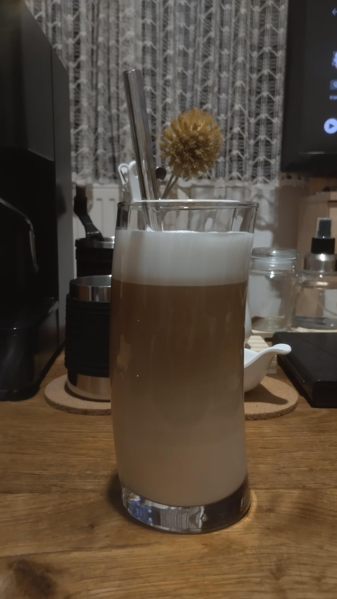 So I got this cheap machine to see if I like “the home game” ’cause I work in cafe and like coffee a lot … This little machine have 53mm portafilter (not presurised), it’s single boiler, have grinder (not that good but good enough until I buy better one – not so many options where I live). I was sceptical, but after I set grinder to his finest grinding setting and try different doses for my single basket it actualy make pretty good coffe, not perfect, but not bad at all. So now I have problem with new expensive hobby πŸ˜ΆπŸ˜‚ (sorry if my english is too bad 😣) Now I need double basket (can’t find any 53mm with option to ship to Bosnia, only some cheap on AliExpress) and of course some decent grinder .. and new place to put machine on ’cause this is not ok 🀣 (Don’t have any photos of shot before milk right now, forget to take it 😬)