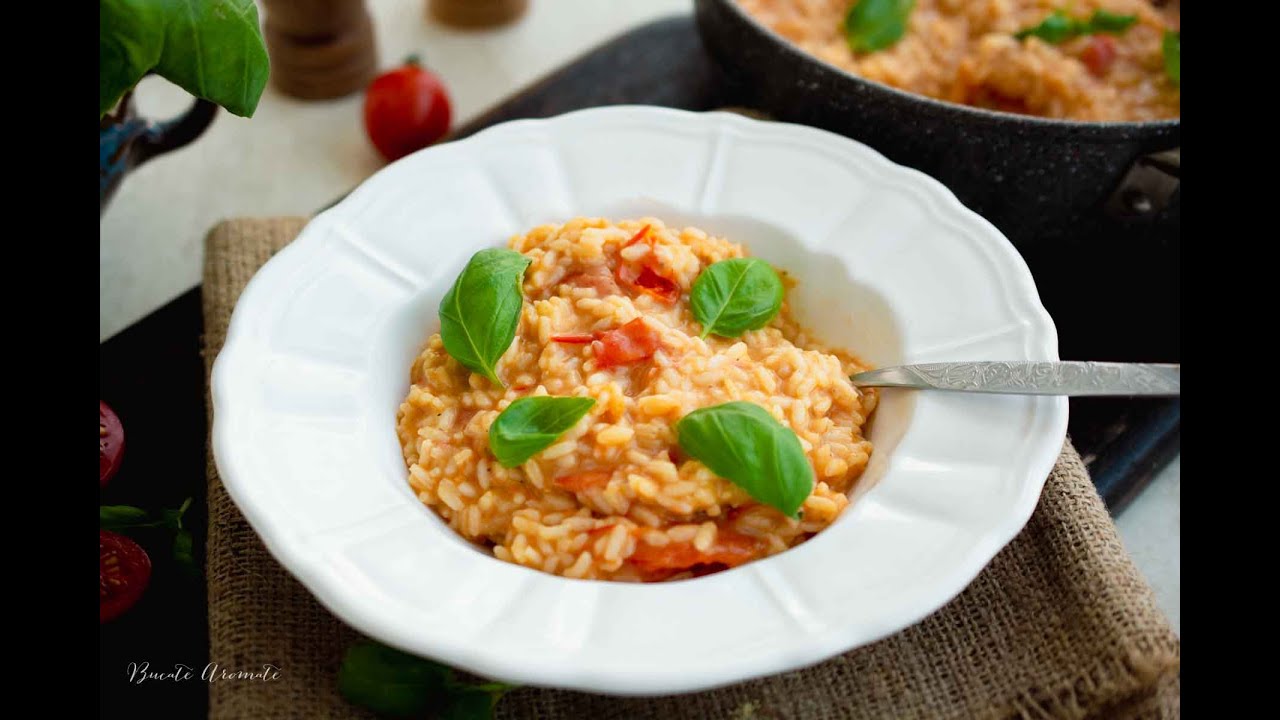 Dear ones, welcome! Today we are making tomato and basil risotto, a very creamy rice, that is easy to make and quick, it has a summer taste, because we decorate it with fresh basil leaves. It is amazing! A very light and very tasty dish. The list of ingredients for 4 servings is here,