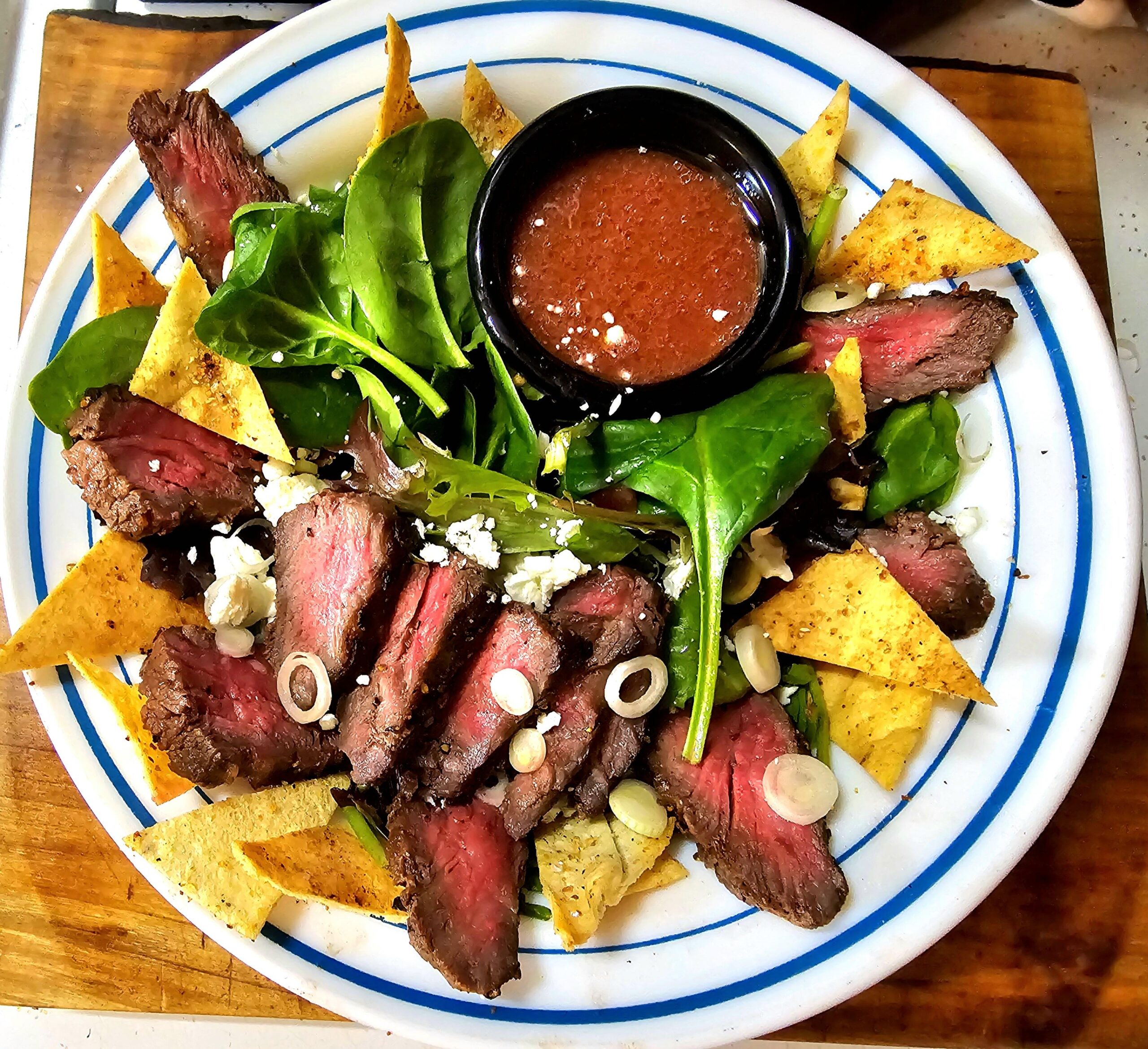 Spinach/Mixed Greens Salad w/ Steak, Feta, Garlic Pita Chips, and a Pomegranate Vinaigretteby XRPcook Write A CommentYou must be logged in to post a comment.