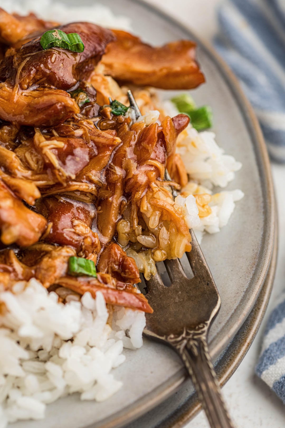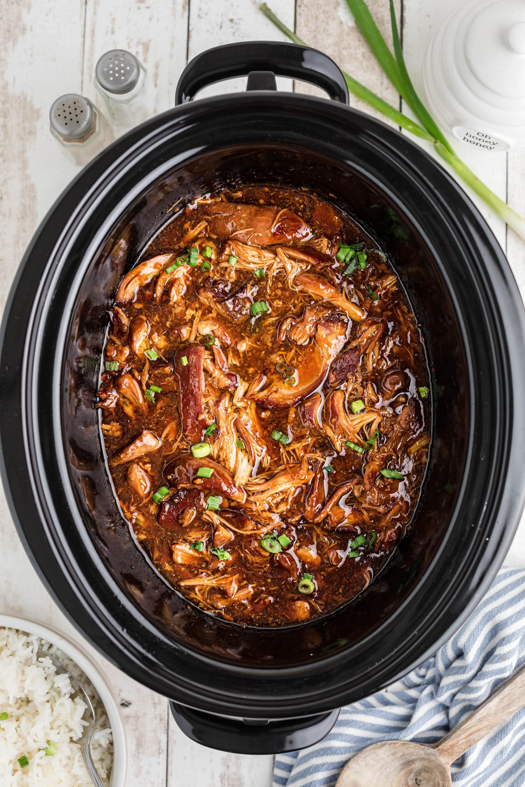 8. Allow to come back to bubbling then turn off the crock pot. Sprinkle with chopped green onions and serve over rice.