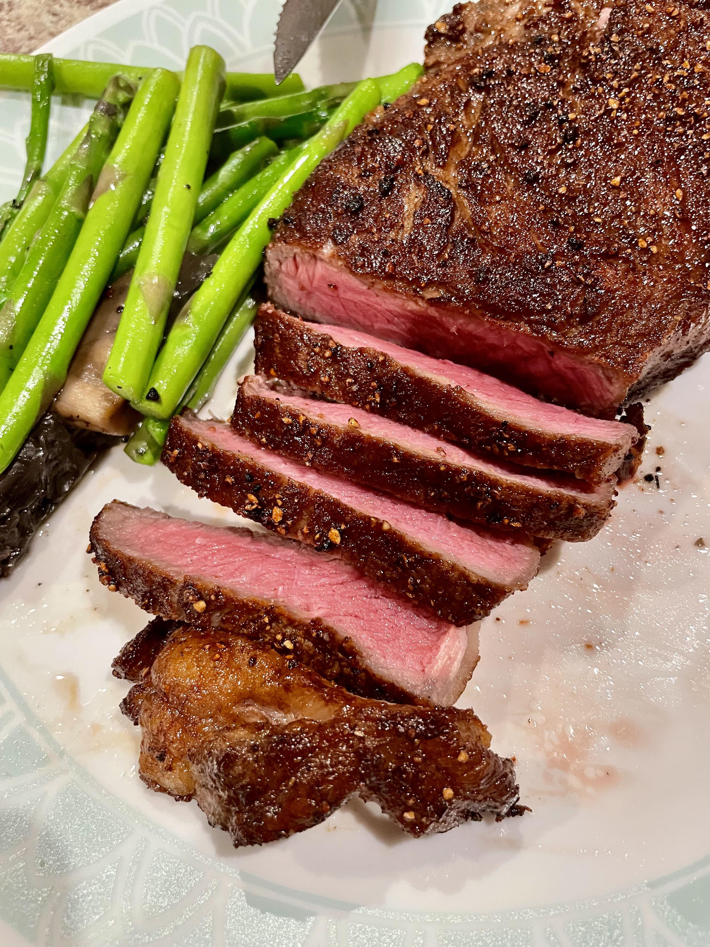 I steal my man’s fatty pieces bc he’s particular about his food. The fatty pieces are the best parts of a steak imo.