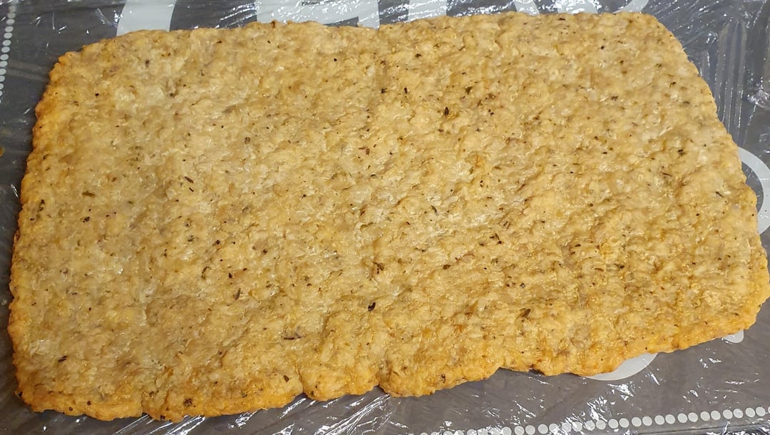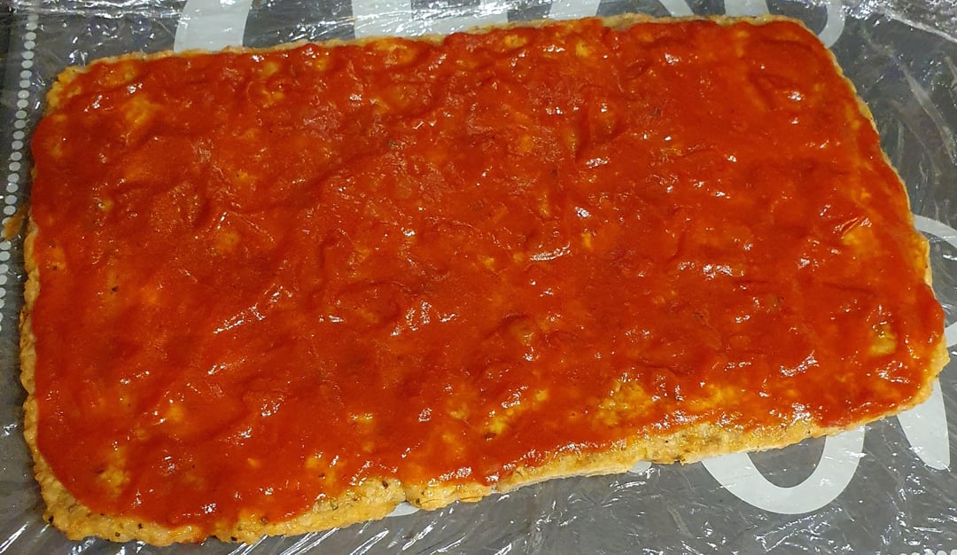 Tips: if you’re gonna load it with more toppings as a I did with my second serving, a pizza pan with walls may be best as cheese and toppings can slide off. Either that or try to create a higher crust around the circumference of the base.