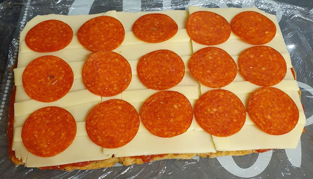 4.Top with sauce, cheese and pepperoni.