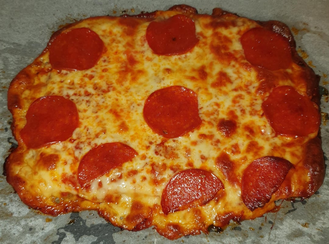 Amalgamation of several other recipes. This one turned out shockingly well for me. Most I’ve found use mozzarella in the crust. I don’t like the idea because I like an extra cheesy mozz topping. So I held off trying it out last year. Boy I regret doing that! Turns out parm and egg is quite sufficient as a binder. It came out sturdy and firm and perfectly capable of lifting a slice, actually better than some thin crust bread pizzas and extremely delicious and filling. So much I couldn’t finish my side salad after 1 serving.