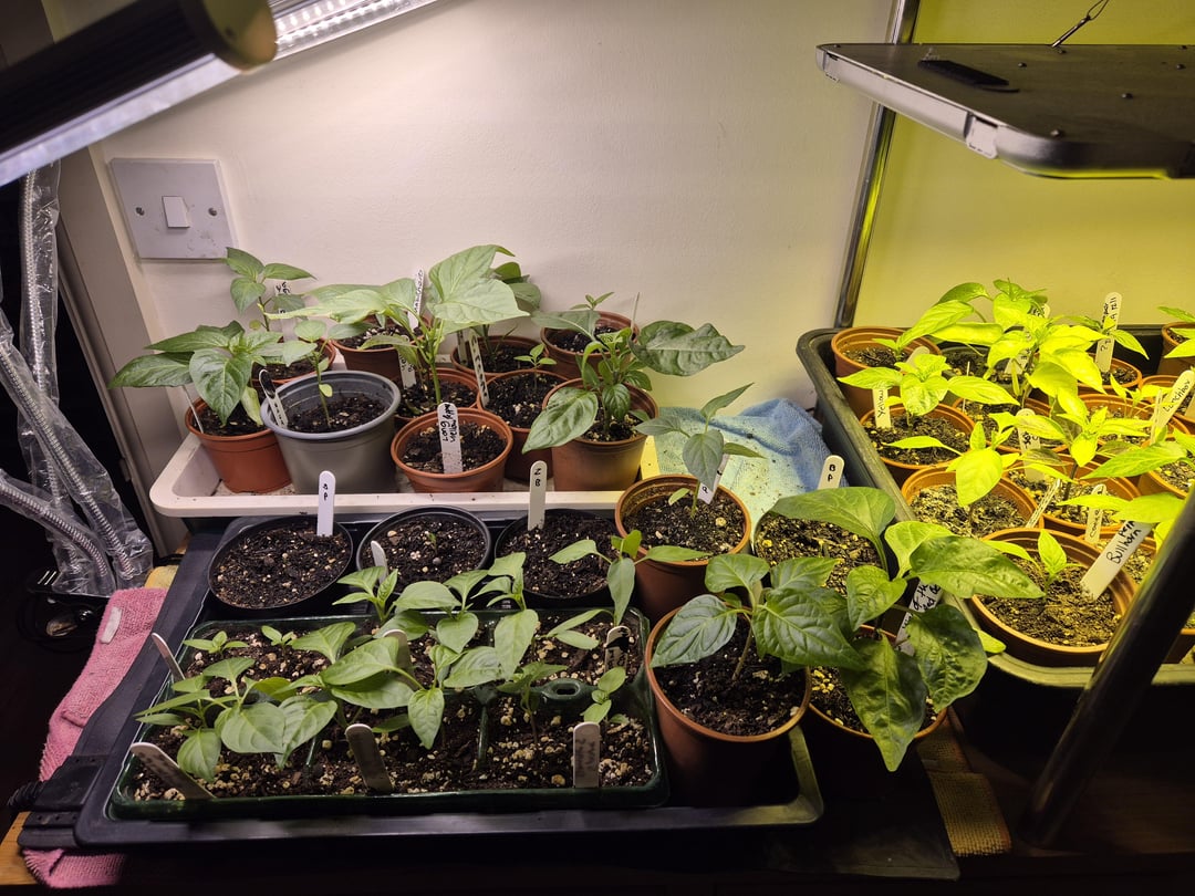 Not perfect, slightly malformed leaves but I’m super happy with the amount of growth on this scotch Bonnet after week 5 – took the tip out two weeks ago and so many sideshoots have sprung up!
