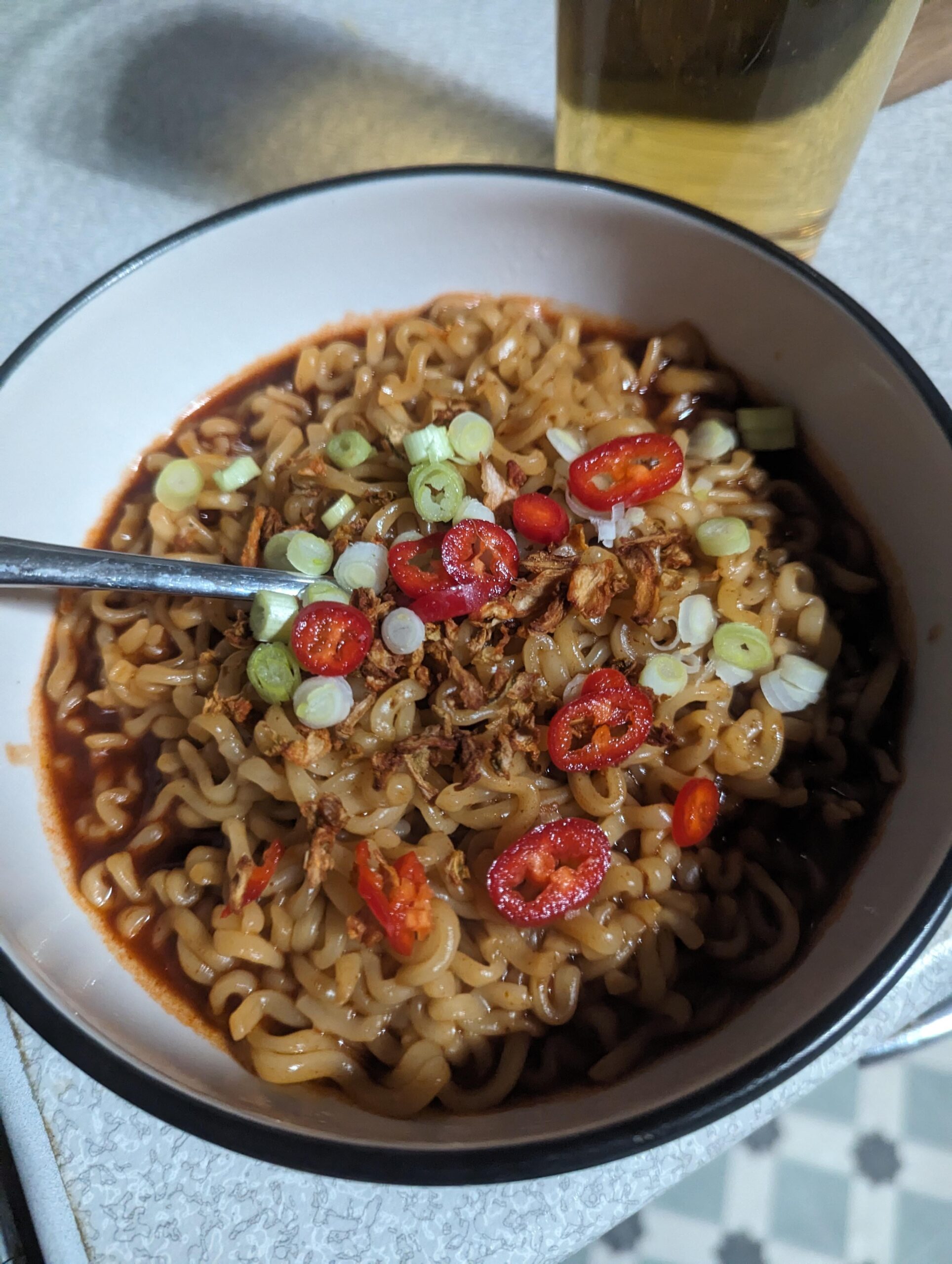 I normally just add spring onion and extra chilli to buldak kimchi or x2. Would be interesting to see what everyone else does to add to the flavor