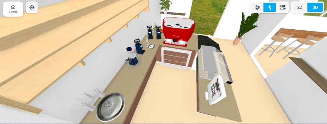 Clearly you’re not in the US, so this may not be pertinent advice: check with your health department about sinks and gap drains. Here, you would be required to have a separate hand washing station in the coffee bar area, which would have an impact on design. Is that a milk pitcher rinser? If not, get one of those—so nice to have.