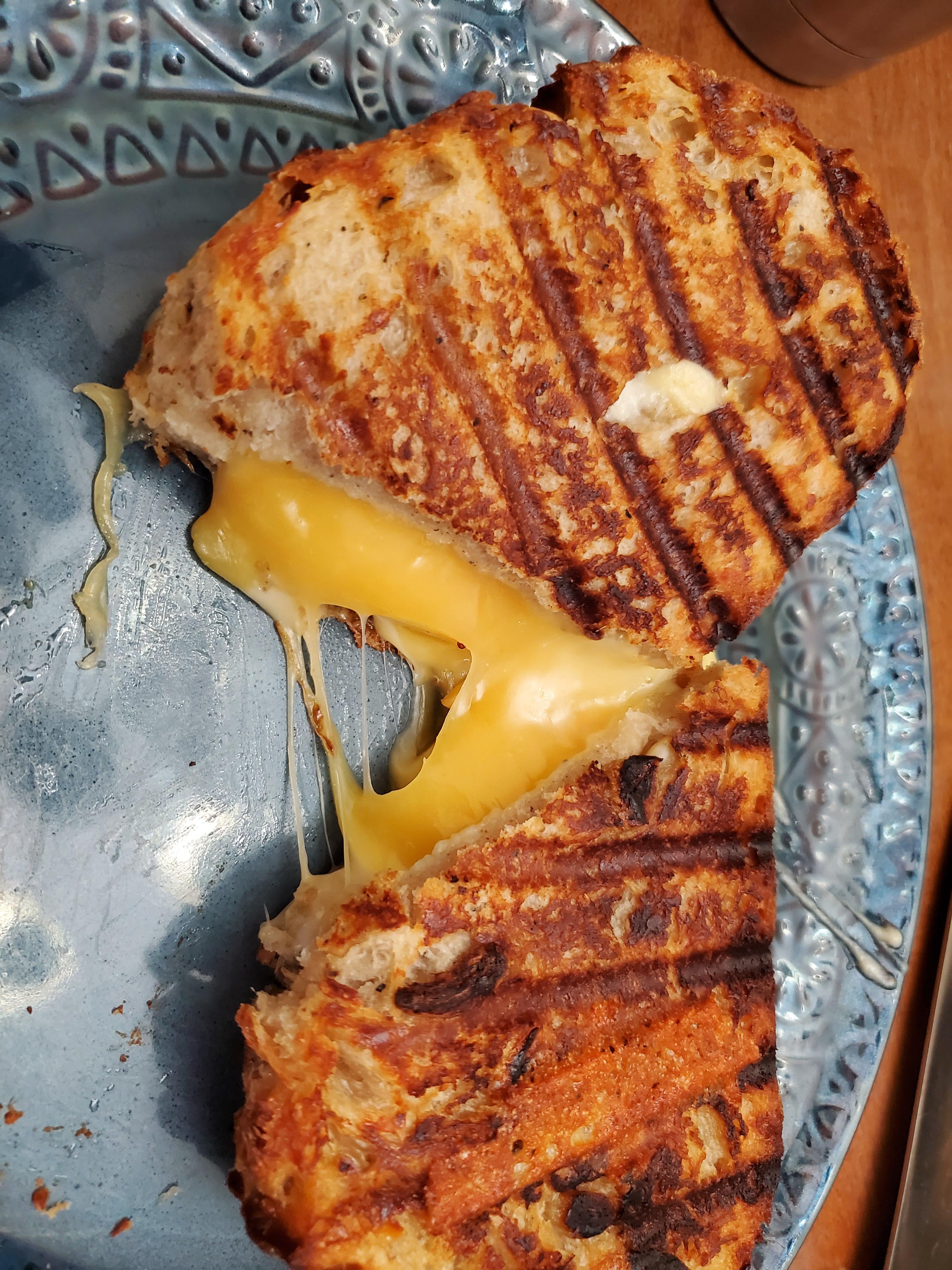 I chopped it in half and put it back on so the cheese could ooze out and get grilled and crispy.