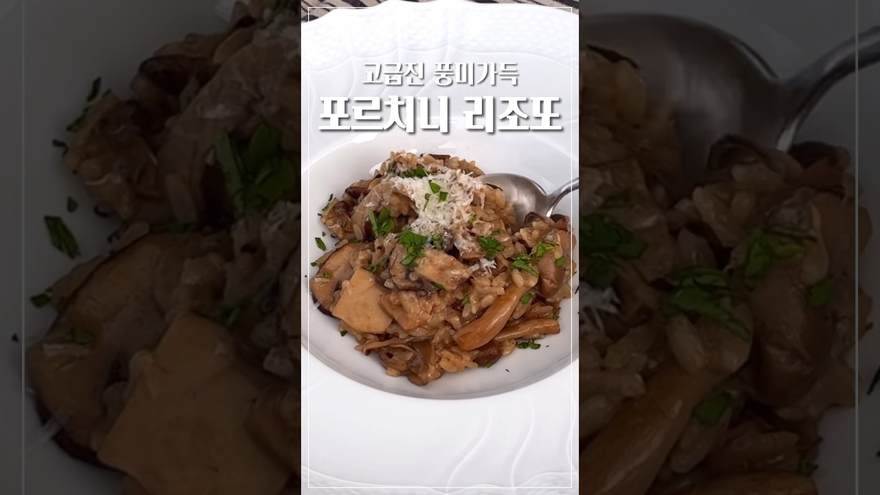 고급진 풍미에 흠뻑 반하게 될 포르치니로 만든 버섯 리조또예요. 일본에서는 생포르치니를 구하기 힘들어서 건조된 제품을 사용했어요.(아마 한국도 비슷할거예요) 같은 레시피로 쌀 대신 파스타를 넣어서 만들어 먹어도 좋답니다!