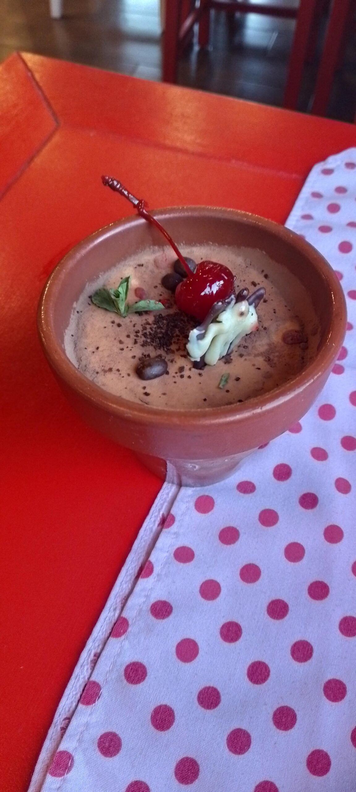 It was one of those traditional clay pots, I think it was coated with something to make it safe for eating in. It was also freezing to keep the tiramisu cold.