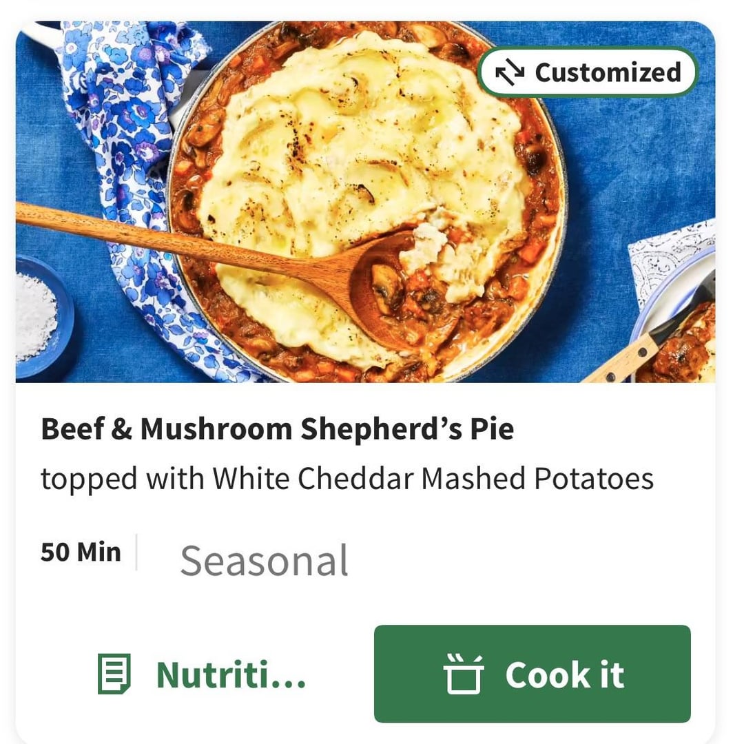 My partner and I dupe the vegetarian version of the shepherd’s pie all the time, turns out great! It does take longer since you have to measure your own ingredients and grate cheese, etc. There is a spreadsheet with a bunch of the hello fresh spice blends too if you want to copy more recipes. Most of the grain bowls/veggie sheet bakes are easy to replicate. https://docs.google.com/spreadsheets/d/1mBxuVPRaky9eZabcQwzx_Yjp4jeaJqVkt6LLINrLIzY/edit#gid=0