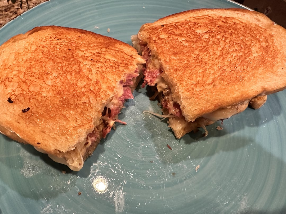 Made this sandwich twice in one day. Corned beef, pepperjack cheese, grilled kraut, and brown mustard on sourdough. by Astraterris 1 Comment succubusprime 2 years ago Same plates! Family Dollar for the win!Write A CommentYou must be logged in to post a comment.
