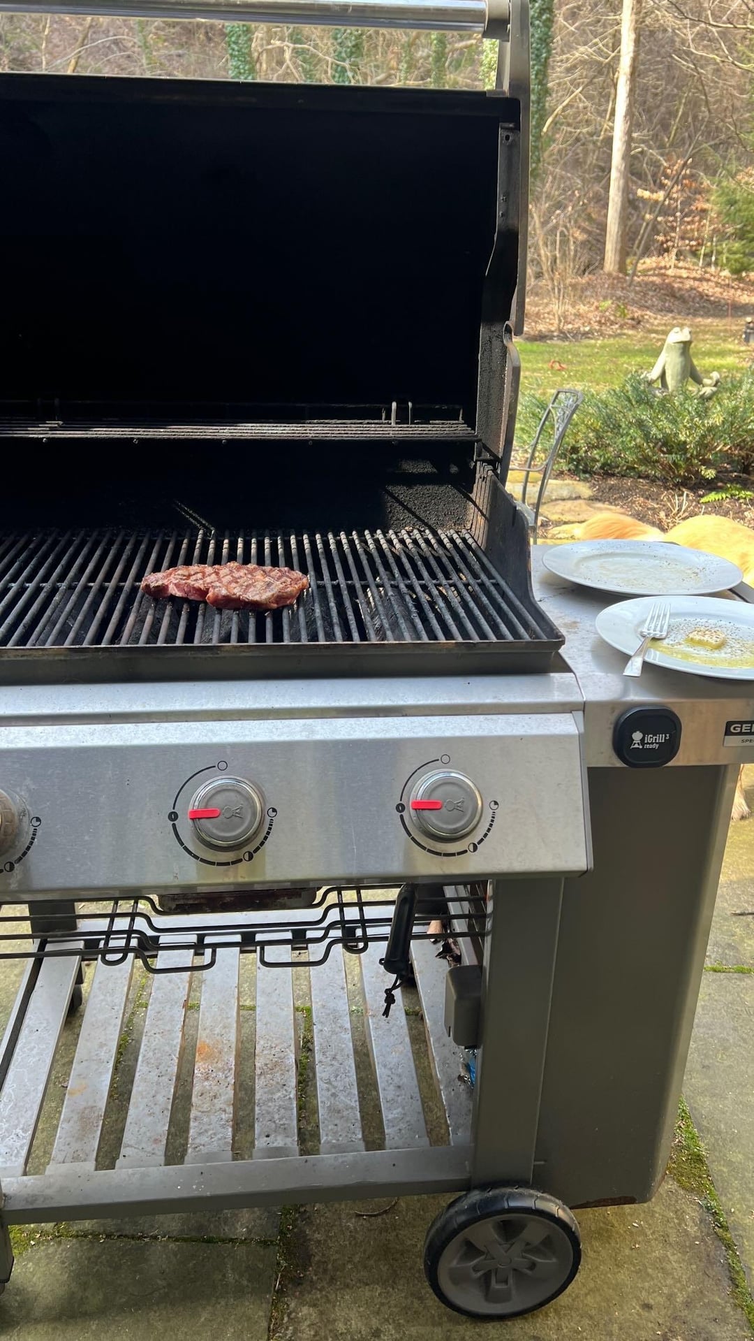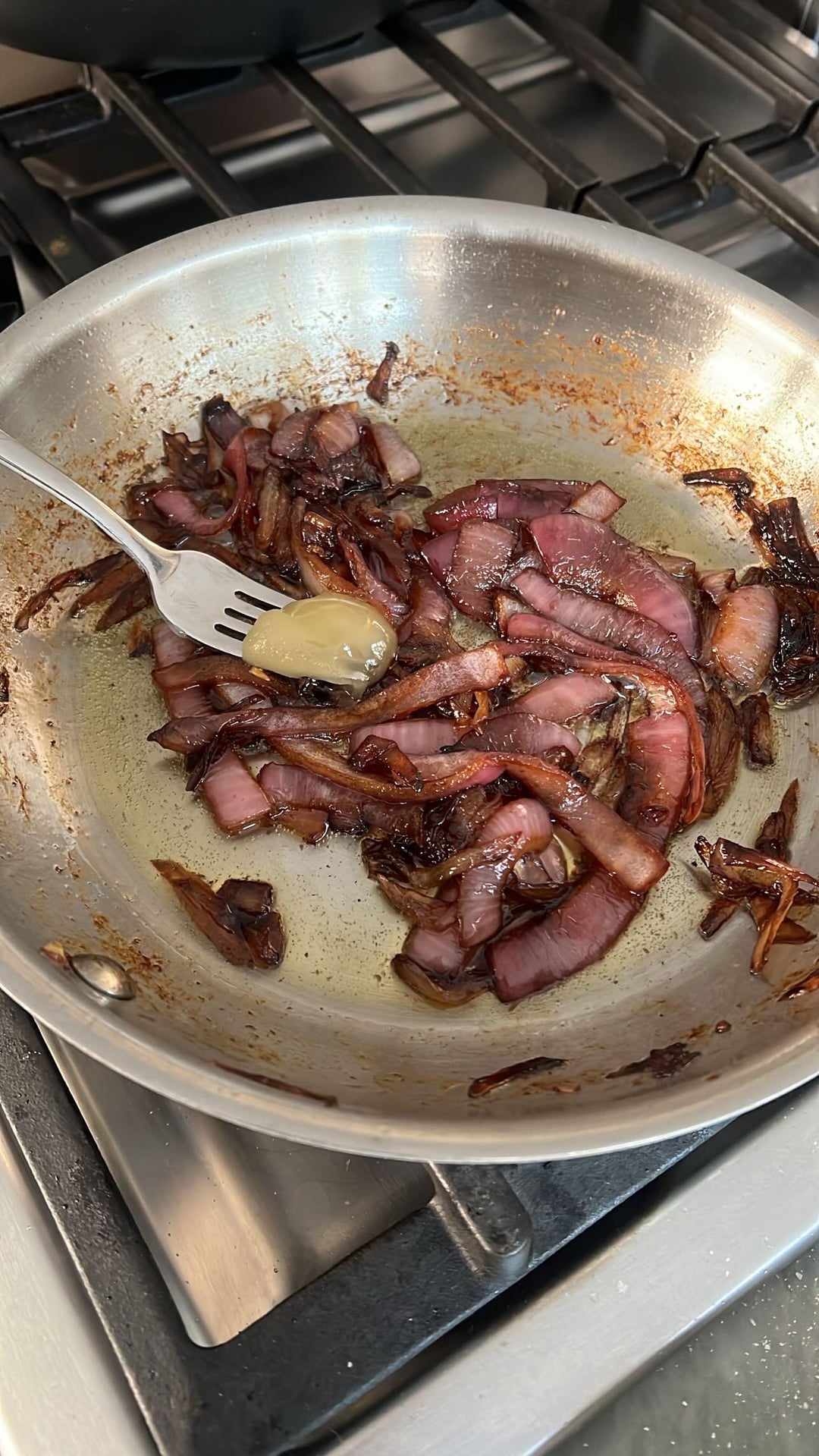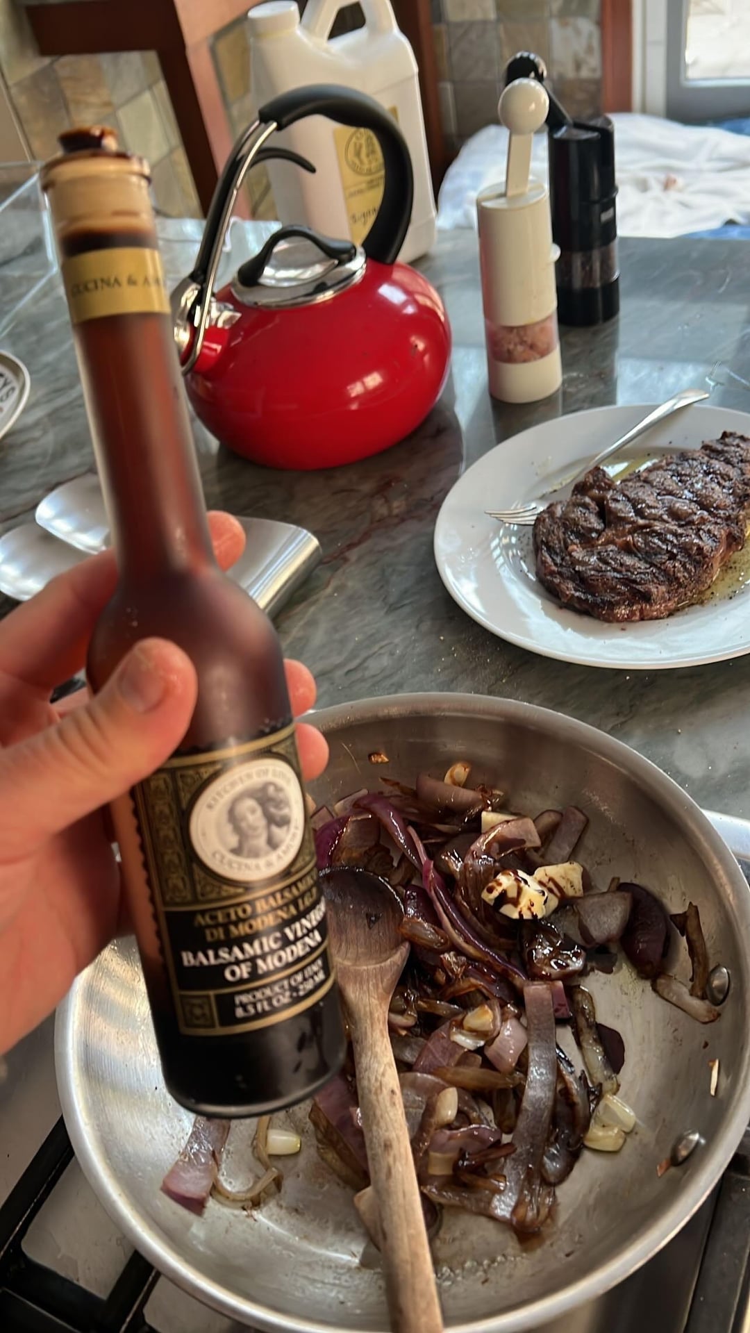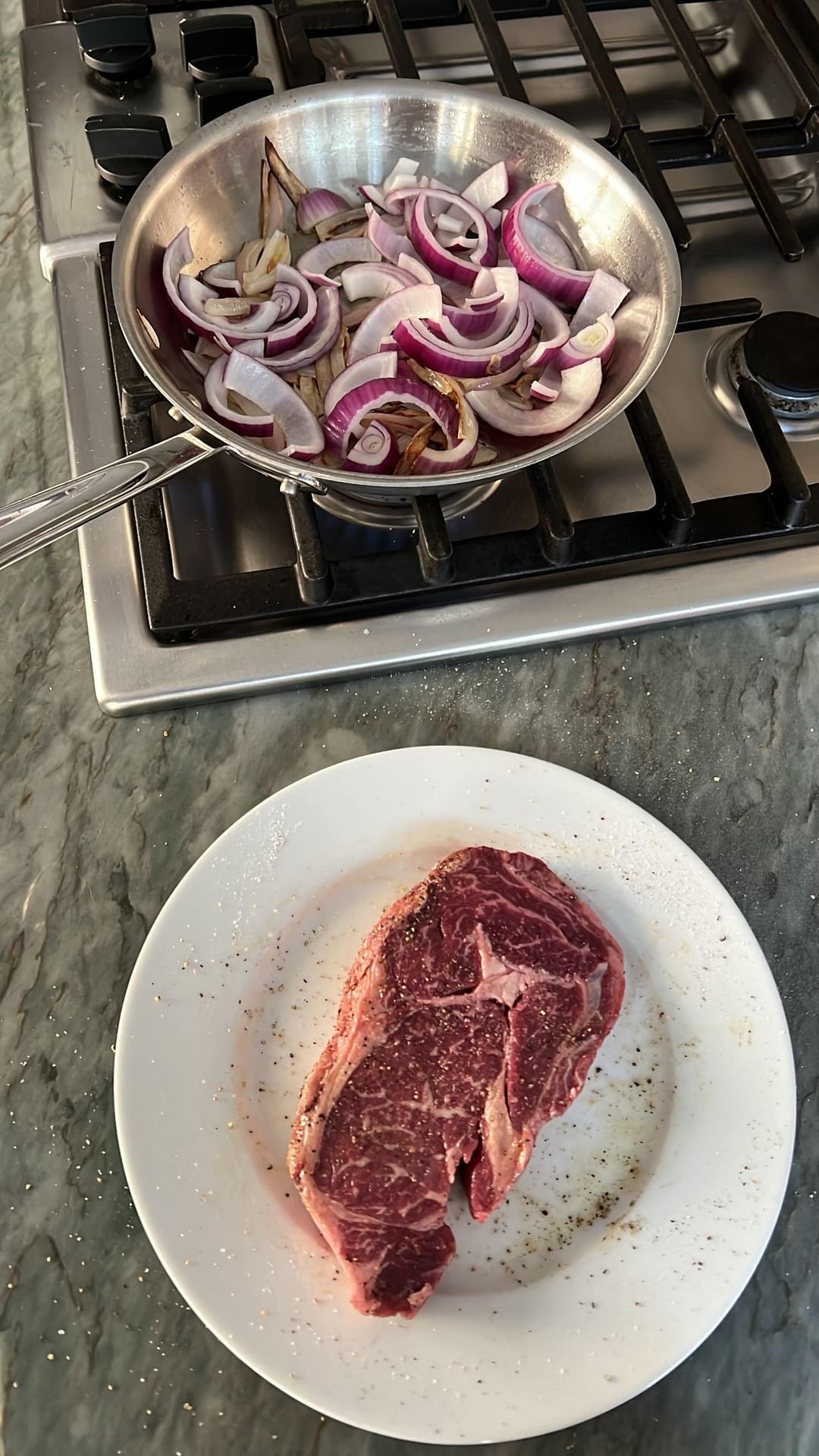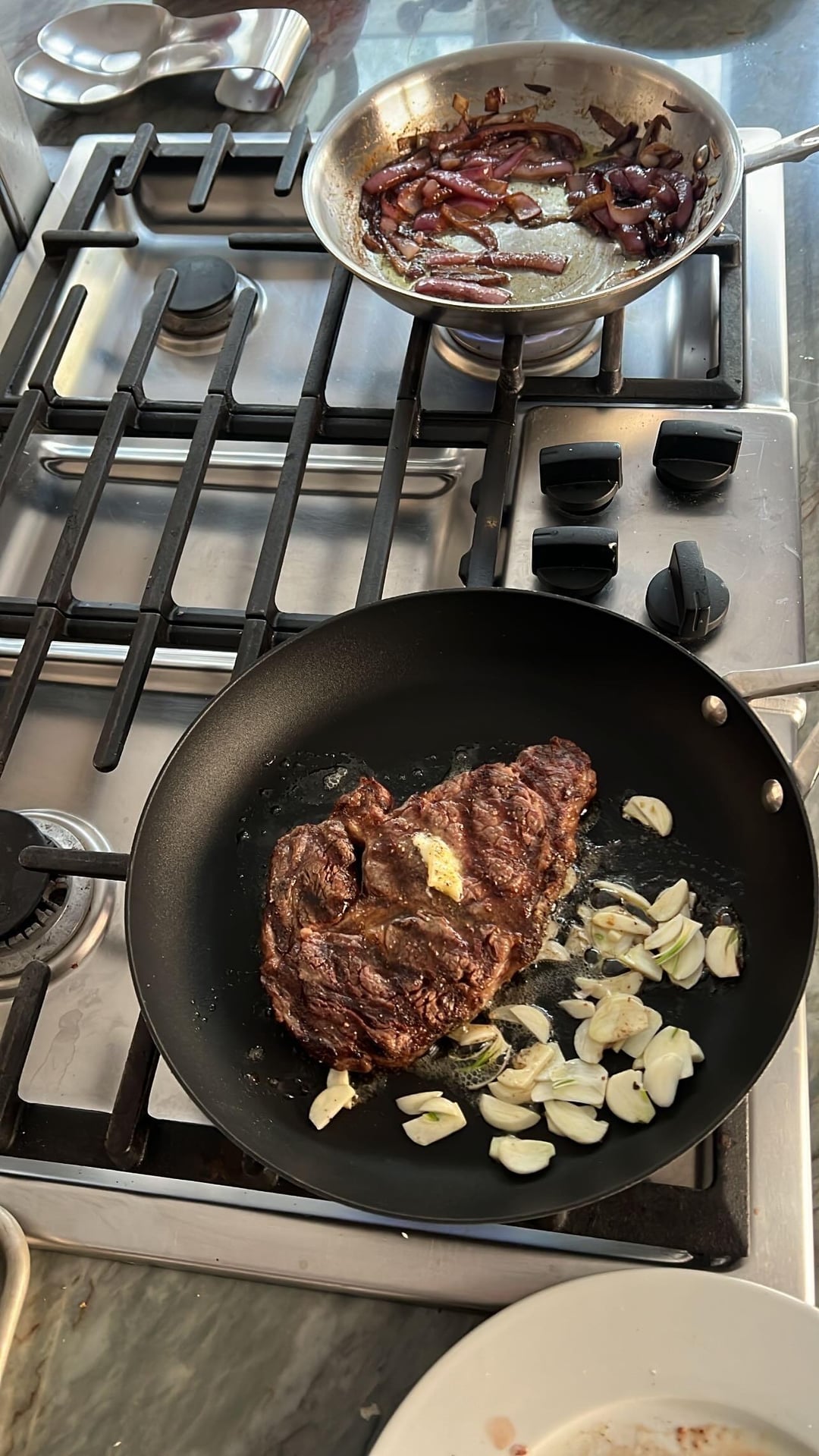Grilled Delmonico ribeye ham and Gruyère croissant sandwich with sir Kensington mayo and caramelized balsamic onions