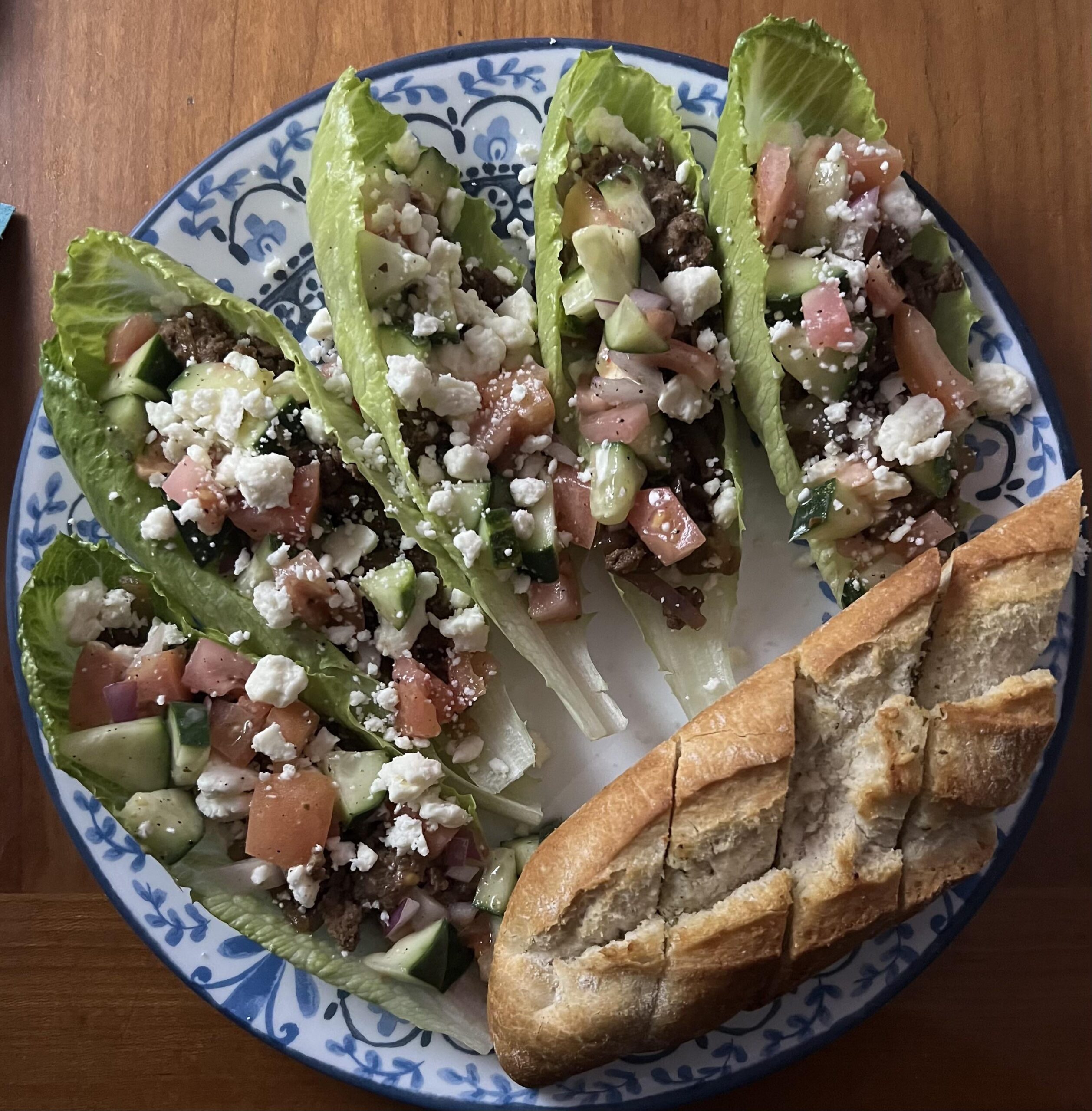 easy. purchased the garlic bread as a side. nice combo. some extra feta from the fridge. loved the size of the romaine.