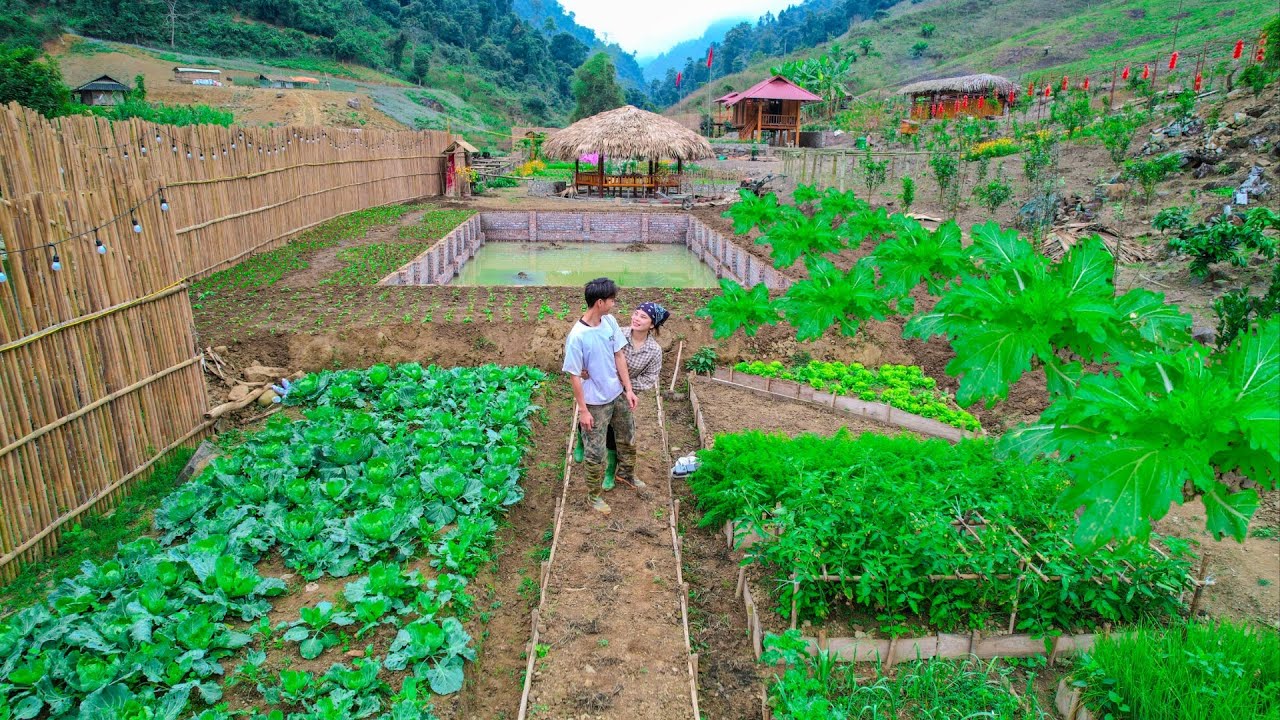 Hello dear friends Sang Vy worked together to improve the land to build a large vegetable garden ground filling Start growing vegetables After planting vegetables, we need to water clean water to create moisture for the soil The flower garden blooms very beautifully Vy grows sticky corn Get grass for fish