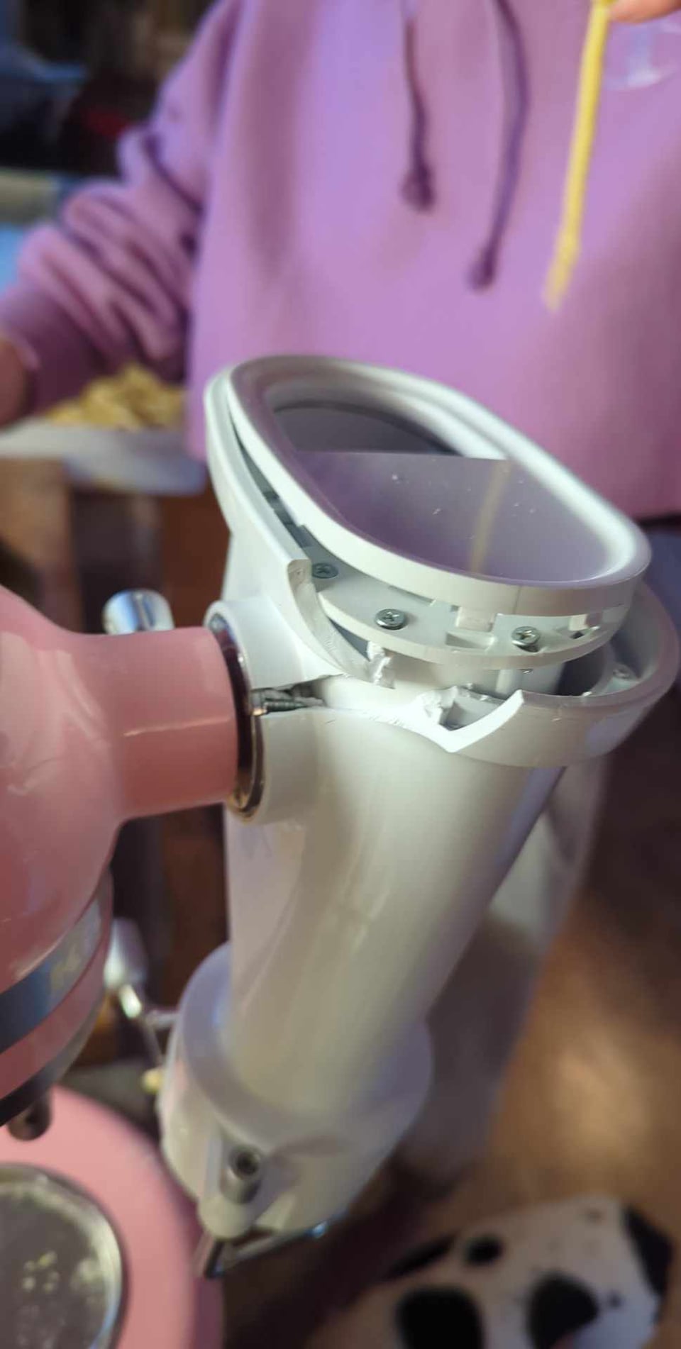 I wanna stupidly clearing the last of the dough in my extruder with dry bread, as I do with my meat grinder, and it exploded. It was such a loud pop and there were tiny screws and little bits of plastic shrapnel everywhere. I learned a lesson, but at least the bucatini was still perfect.